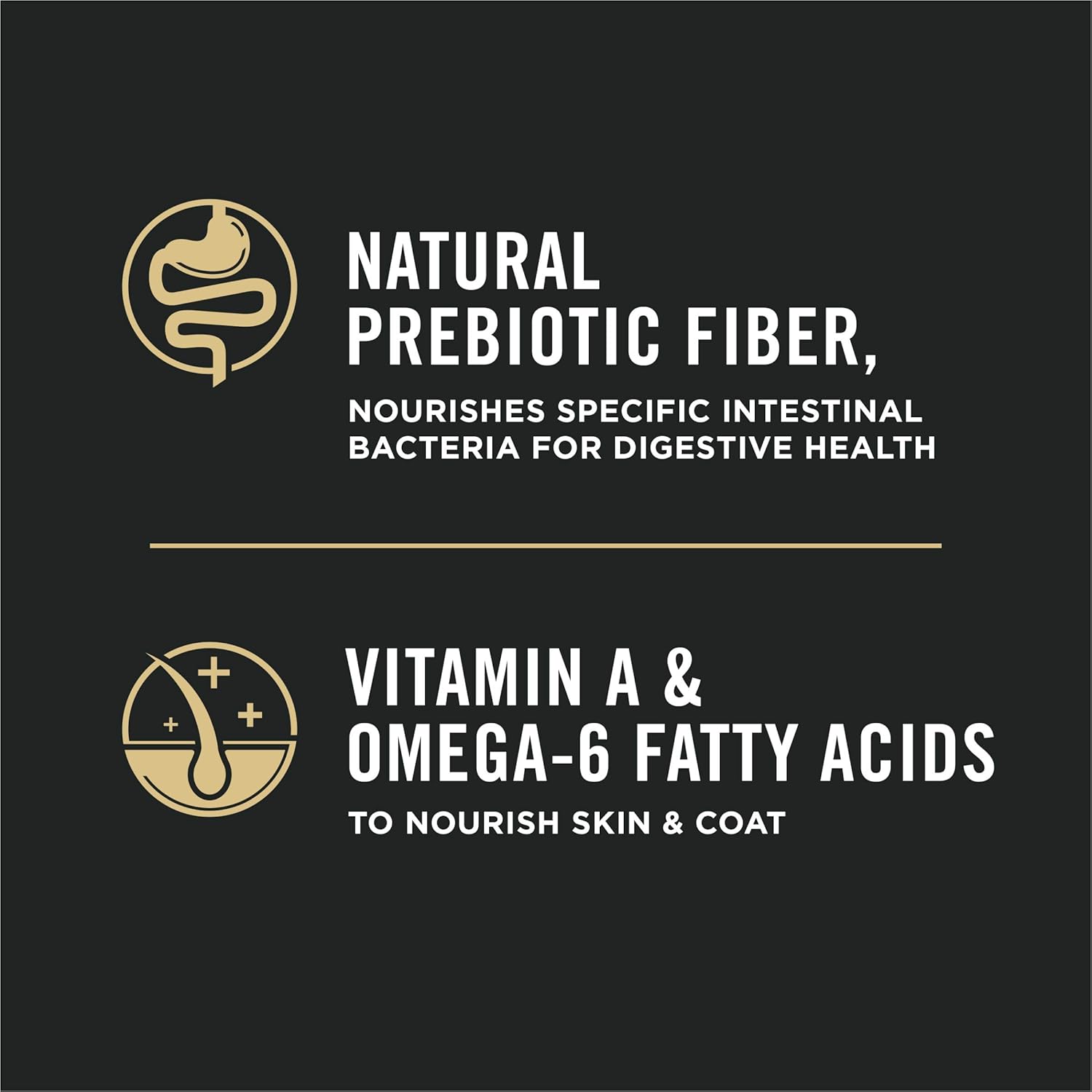 - Omega-6 fatty acids and vitamin A to nourish skin and coat