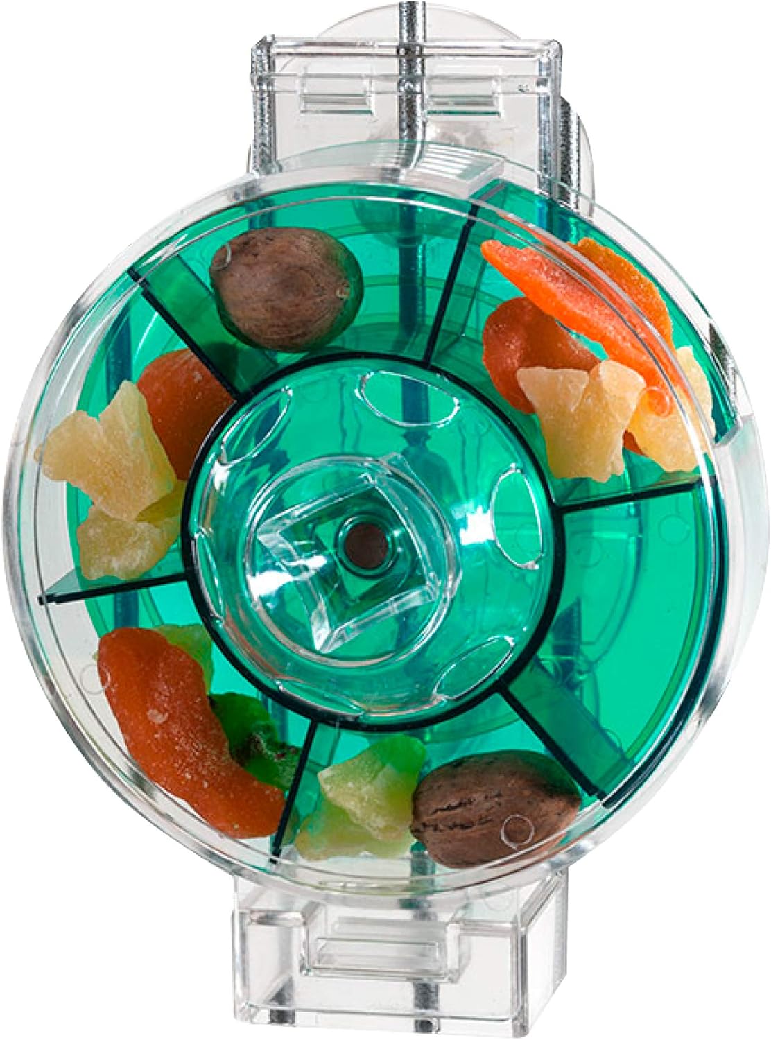- EASY TO USE: Simply load the 6 compartments of the feeder with your bird's favorite fresh fruits, veggies, or treats and watch your bird try to figure out how to get them out