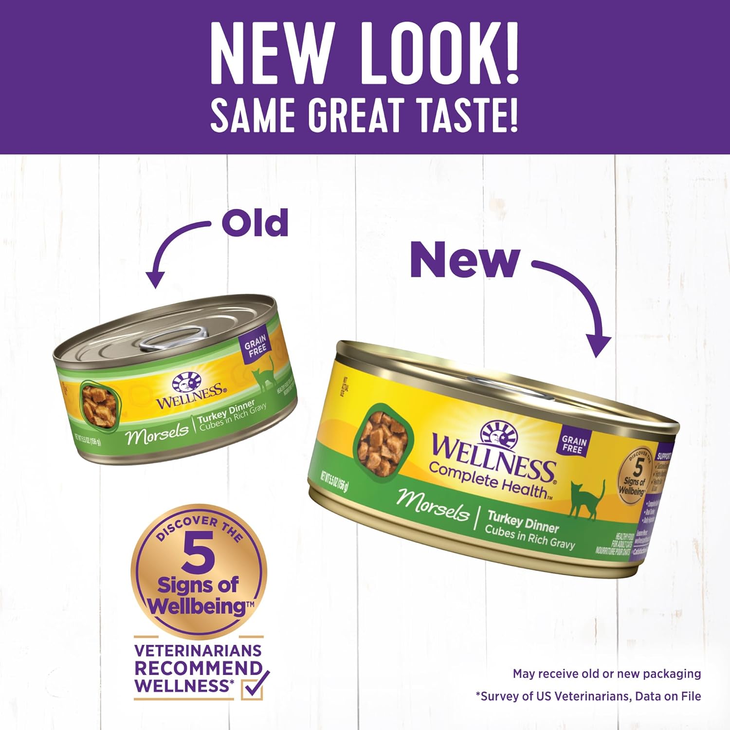 Wellness Complete Health Cubed Adult Wet Cat Food, Natural, Protein-Rich, Grain Free, 5.5 Ounce, 24 Pack, (Turkey Entrée)