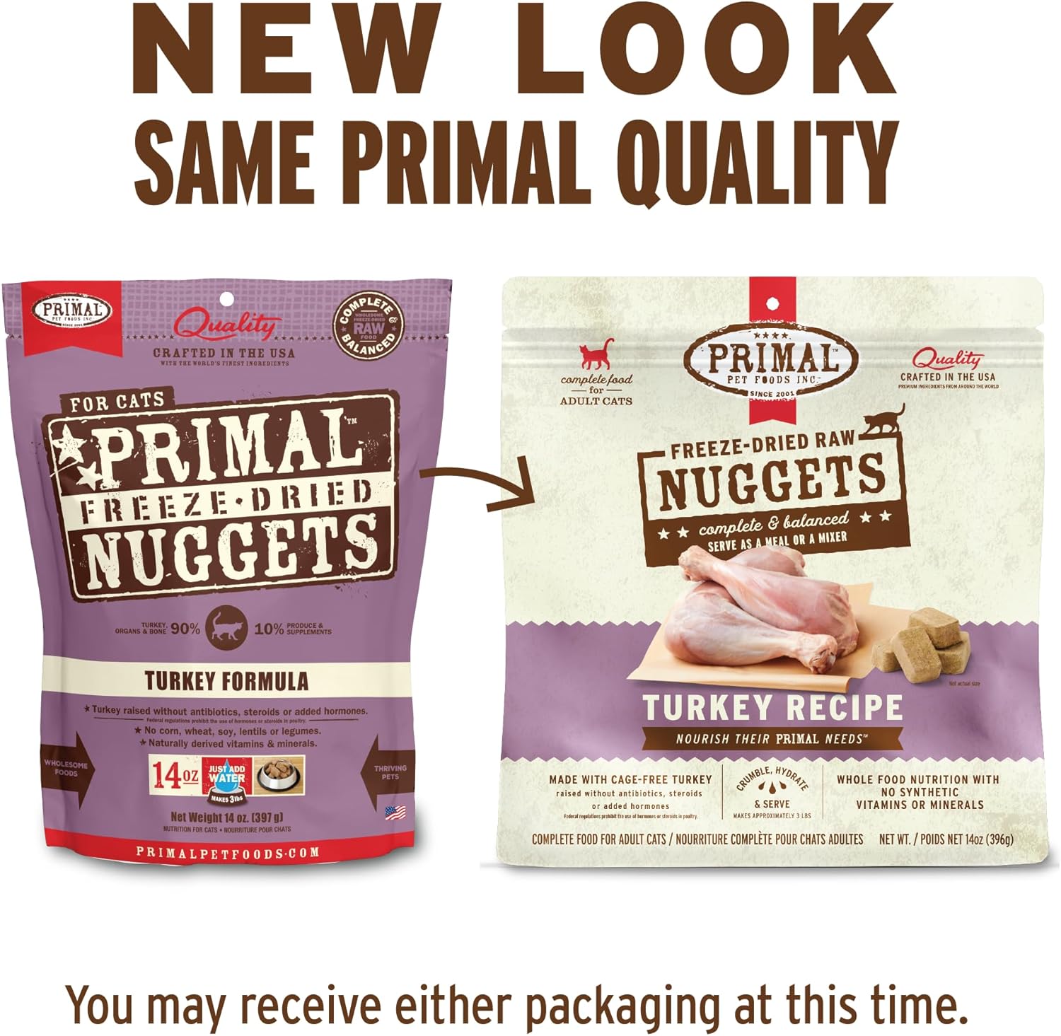 Primal Freeze Dried Raw Cat Food Nuggets Turkey, Complete & Balanced Meal or Topper, Premium, Healthy, Grain Free, High Protein Raw Cat Food with Probiotics (5.5 oz)