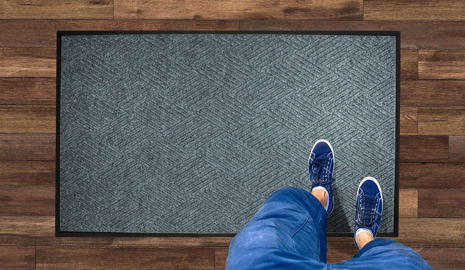 WaterHog Diamond | Commercial-Grade Entrance Mat with Rubber Border – Indoor/Outdoor, Quick Drying, Stain Resistant Door Mat (Bluestone, 4' x 10')