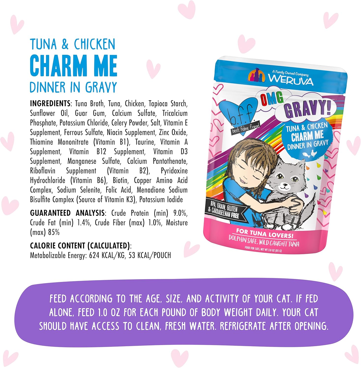 Weruva B.F.F. OMG - Best Feline Friend Oh My Gravy! Tuna & Chicken Charm Me with Tuna & Chicken in Gravy Cat Food, 3oz Pouch (Pack of 12)