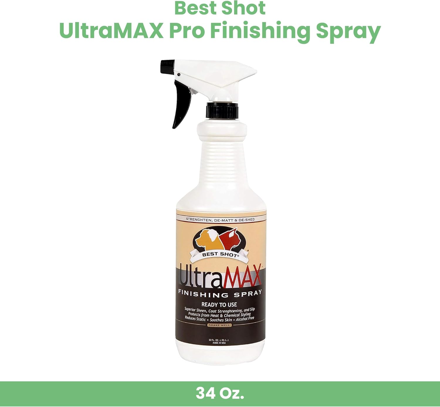 Best Shot UltraMAX Pro Finishing Spray, Ideal Detangler Spray for Pets, Hydrating and Soothing Pet Grooming Spray, for Dogs and Cats, 34 Oz.