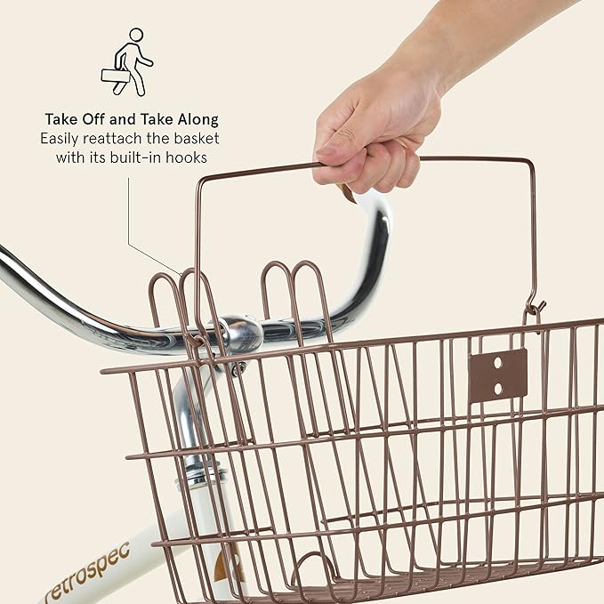 Retrospec Apollo-Lite Lift-Off Bike Basket - Detachable Steel Handlebar Basket with Carrying Handle for Commuting, Shopping & Beach Trips - 14.5in x 9.5in Weather-Resistant Biking Gear