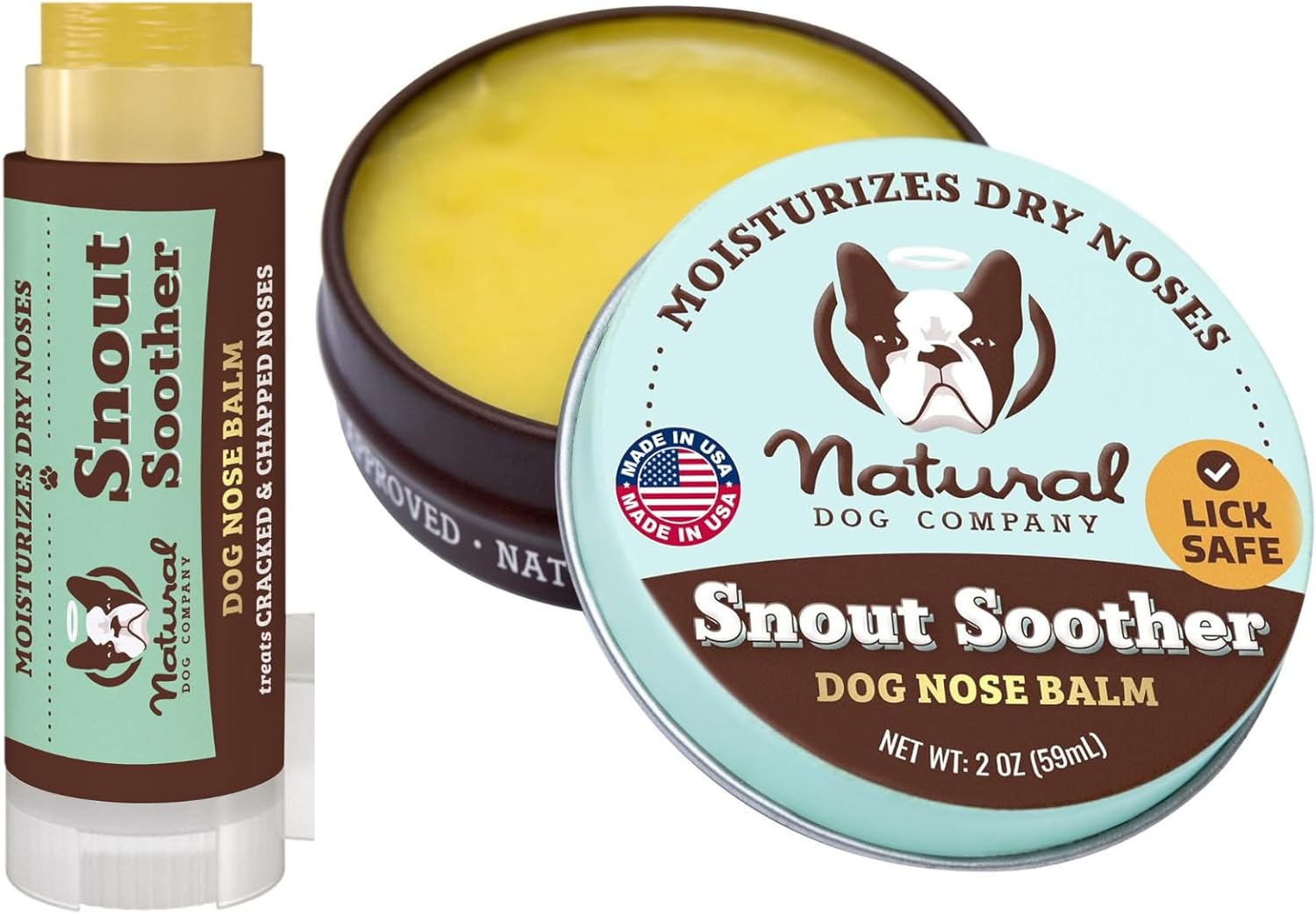 Natural Dog Company Snout Soother Bundle, Includes 2oz Tin + 0.15oz Stick, Dog Nose Balm for Chapped, Crusty and Dry Dog Noses, Organic, All Natural Ingredients, Packaging May Vary