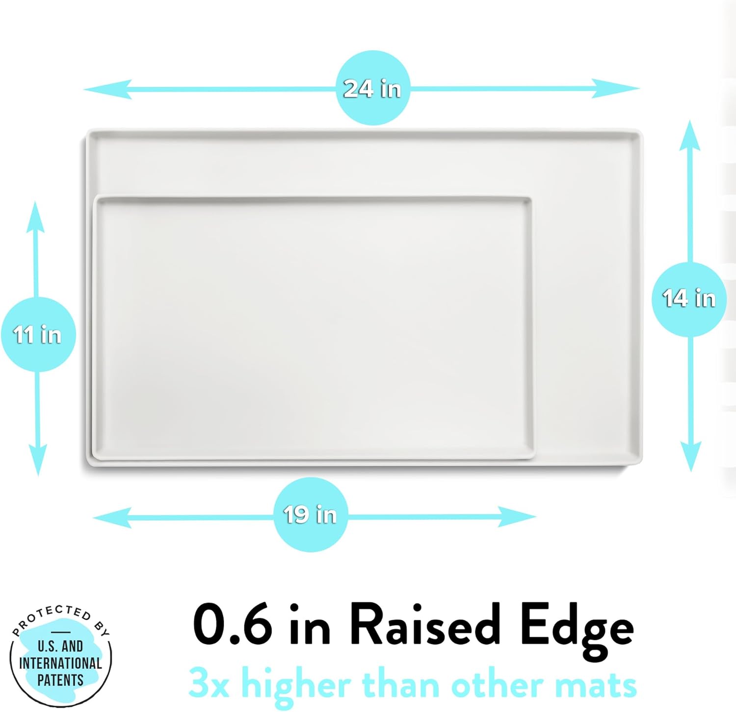 - ⭐️ EXTRA HIGH EDGE: CatGuru Cat Food Mat is the only cat food mat on the market that can hold up to 5 cups of spilled food and water due to the raised outer edges. This heavy duty pet food mat is specially designed for messy eaters. Use this cat mat under cat bowls, cat water fountain or cat feeder to protect your floors.