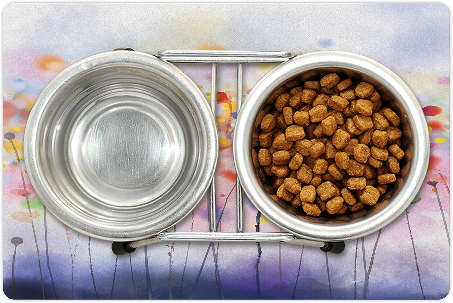 Lunarable Watercolor Flower Pet Mat for Food and Water, Flowers in Soft Colors Dreamy Abstract Colorful Blurred Display, Non-Slip Rubber Mat for Dogs and Cats, 18" X 12", Orange Purple