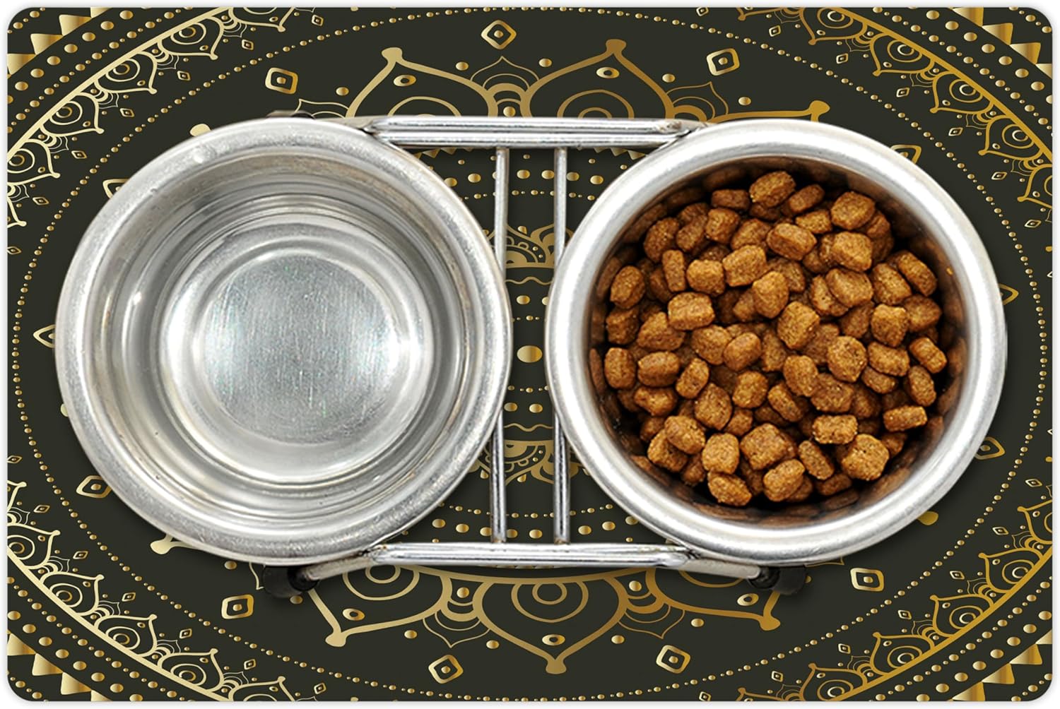 Lunarable Mandala Pet Mat for Food and Water, Tribal Harmonyic Art Illustration Print, Non-Slip Rubber Mat for Dogs and Cats, 18" X 12", Yellow Beige