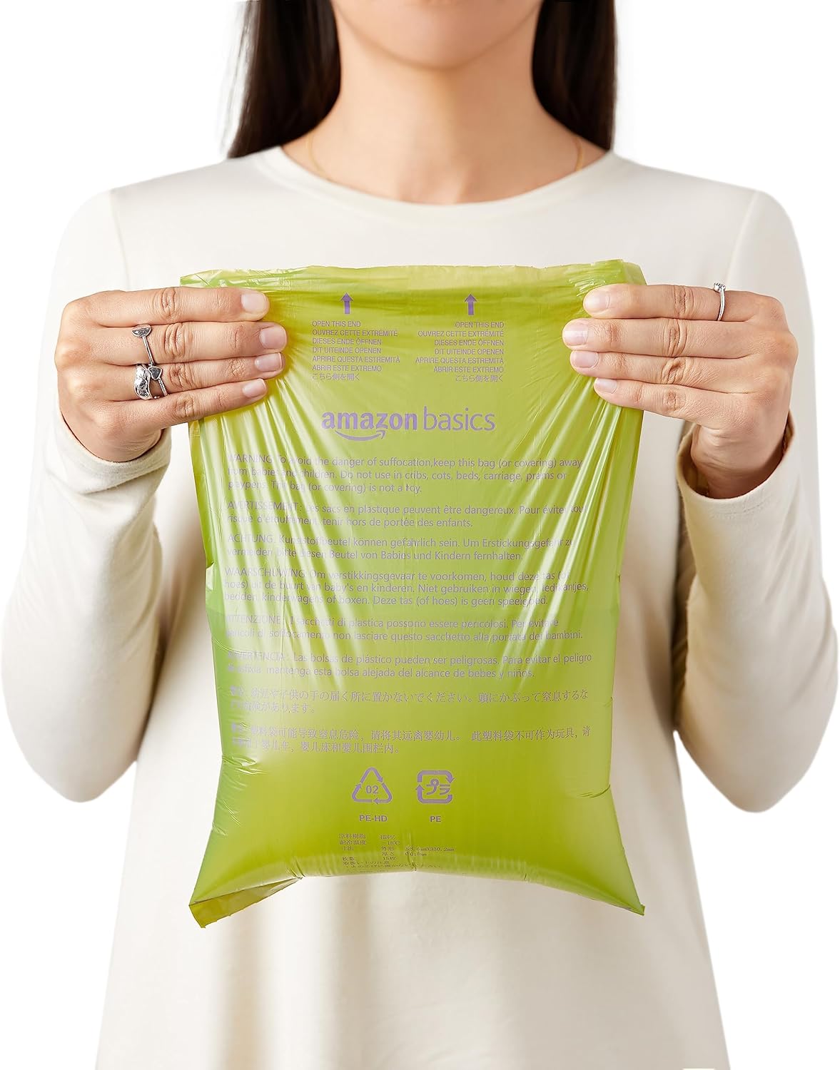Amazon Basics Dog Poop Bags with Dispenser, 270 Count, Enhanced for Guaranteed Leakproof, Talcum Powder Scented, Includes Leash Clip