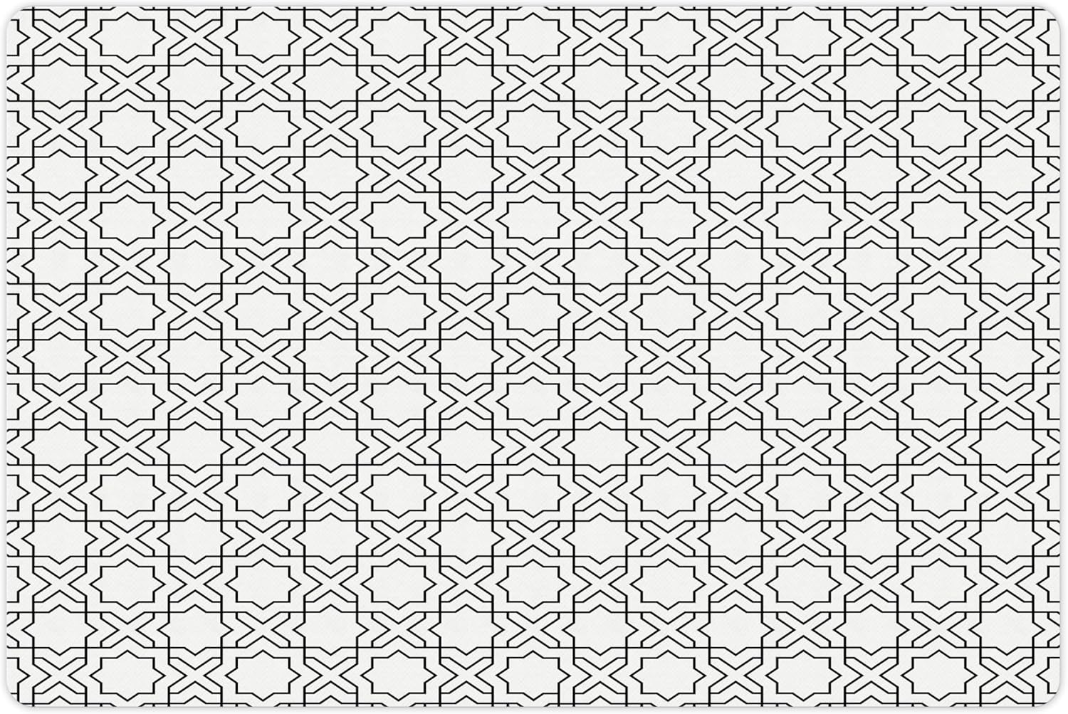 Lunarable Modern Pet Mat for Food and Water, Geometric Oriental Morrocan Design with Star Squares Lines Triangles Art Print, Non-Slip Rubber Mat for Dogs and Cats, 18" X 12", Off White