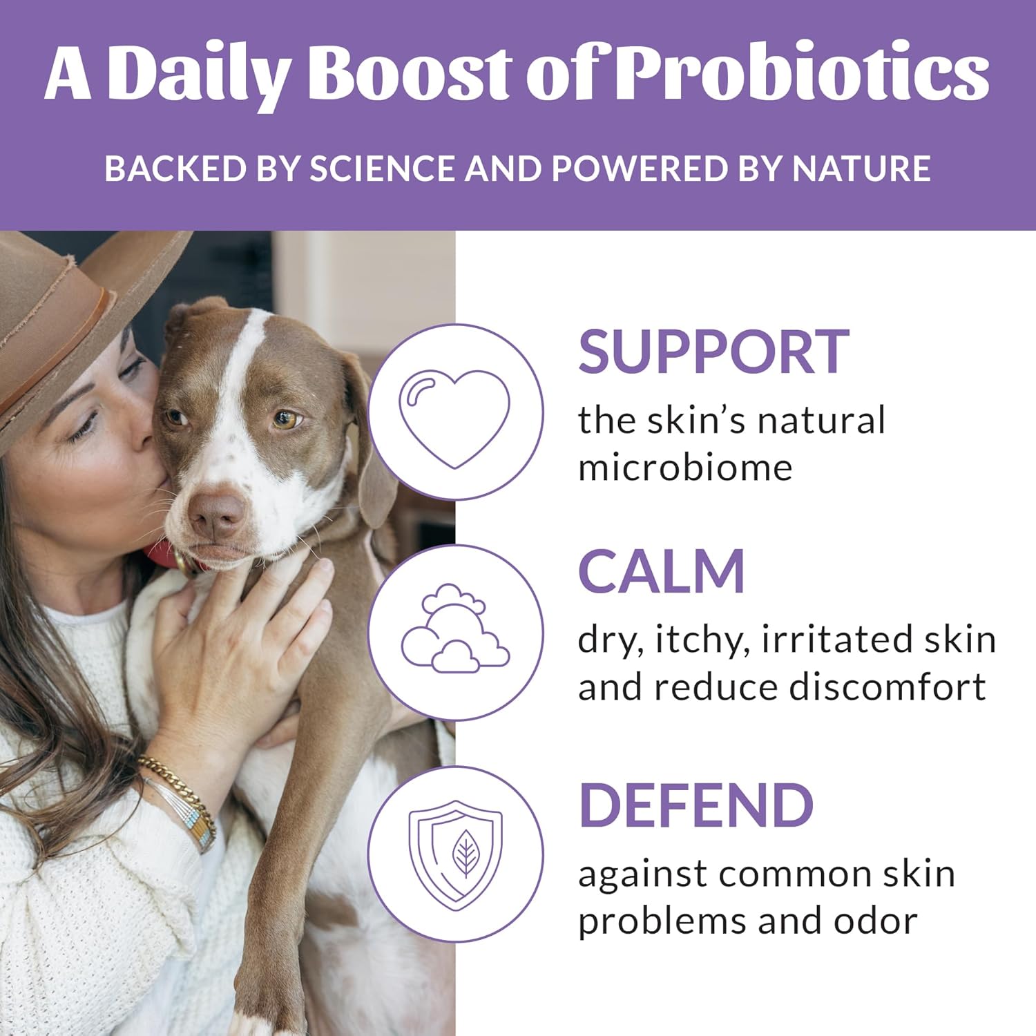 - Probiotic Formula- Each bottle contains topical probiotics that help support a healthy microbiome to defend against common skin problems such as itching, odor, dryness, dandruff, hot spots, and excessive shedding.