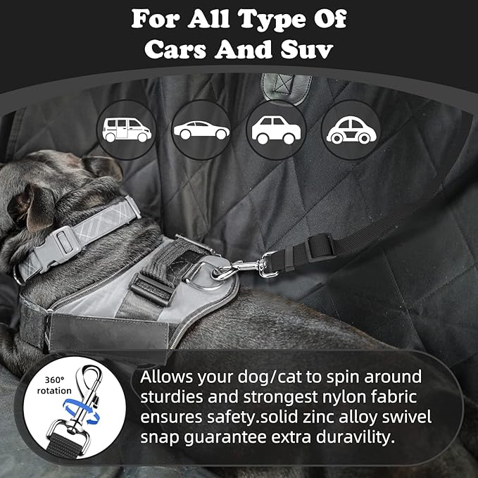 - HIGH QUALITY: Made of high quality nylon fabric to ensure safety, features the solid zinc alloy swivel snap and quality buckles, the pet car seat belt ensures the most safest traveling for your pet, and provides a most relaxing driving experience for you.