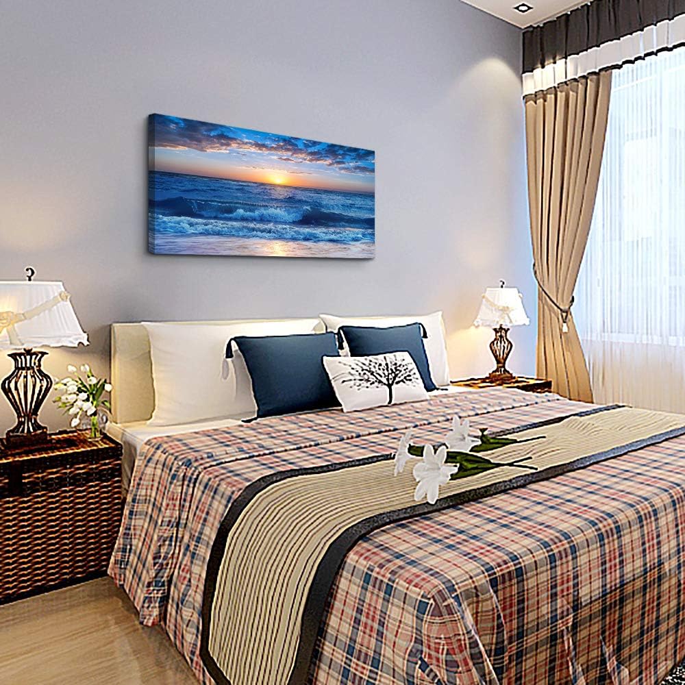 canvas wall art for living room Blue Ocean Sea sun landscape painting bathroom Wall Decor Ready to Hang for Home Decorations office family bedroom kitchen Works canvas Prints pictures 24" x 48"inch