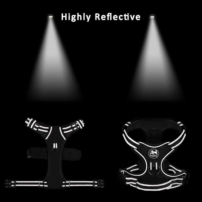 PoyPet No Pull Dog Harness, Reflective Comfortable Vest Harness with Front & Back 2 Leash Attachments and Easy Control Handle Adjustable Soft Padded Pet Vest for Small to Large Dogs (Gray,XS)