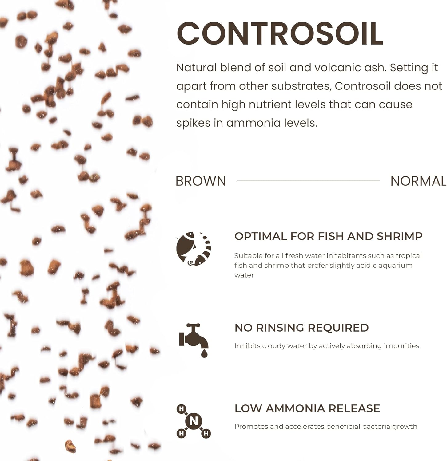 Ultum Nature Systems Controsoil - Freshwater Aqua Soil Substrate for Fish, Shrimp, Live Plant Propagation and Aquascaping - 6.8pH Low Ammonia, Volcanic Ash - Brown, Normal (1 Liter | 2LB)