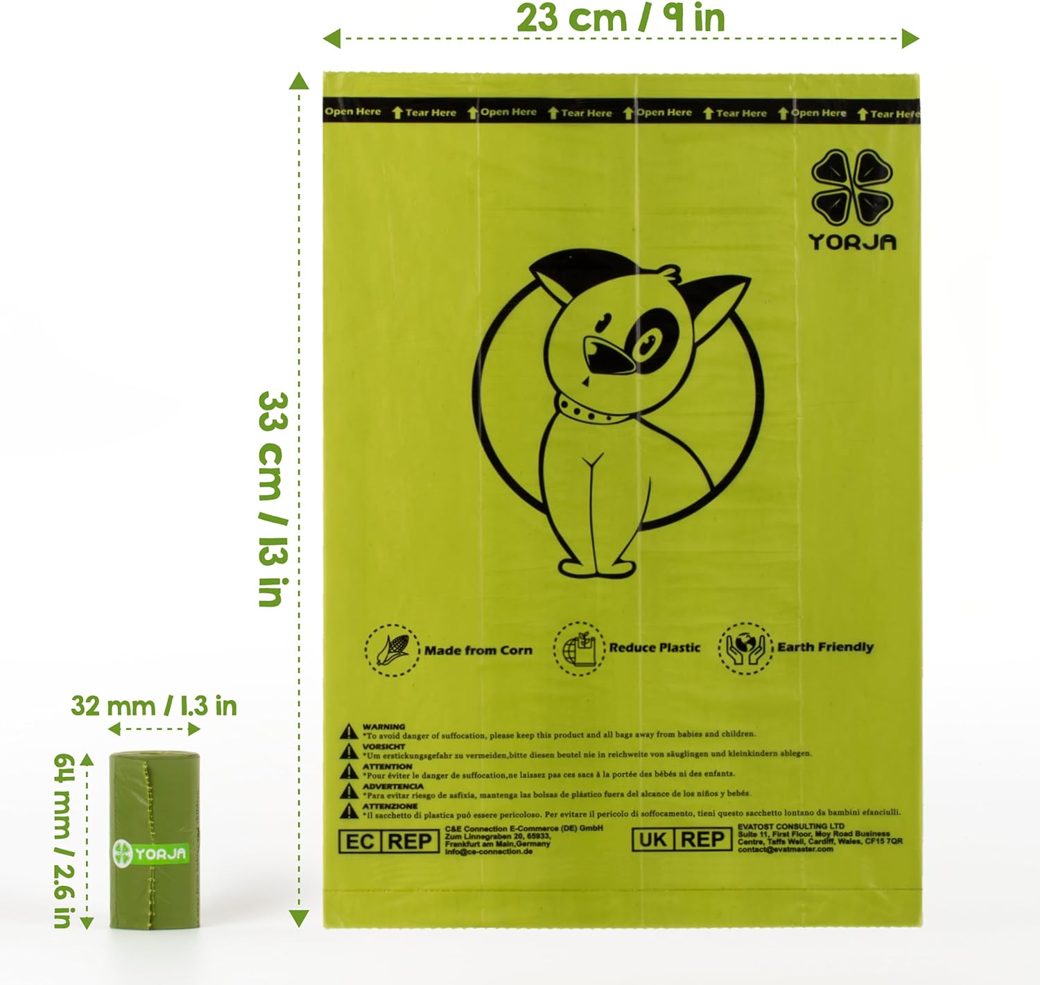 YORJA Dog Poop Bags Rolls with Dispenser & Holder, 510 Pet Waste Bags, 100% Leak Proof Extra Thick and Strong Corn Starch Blend