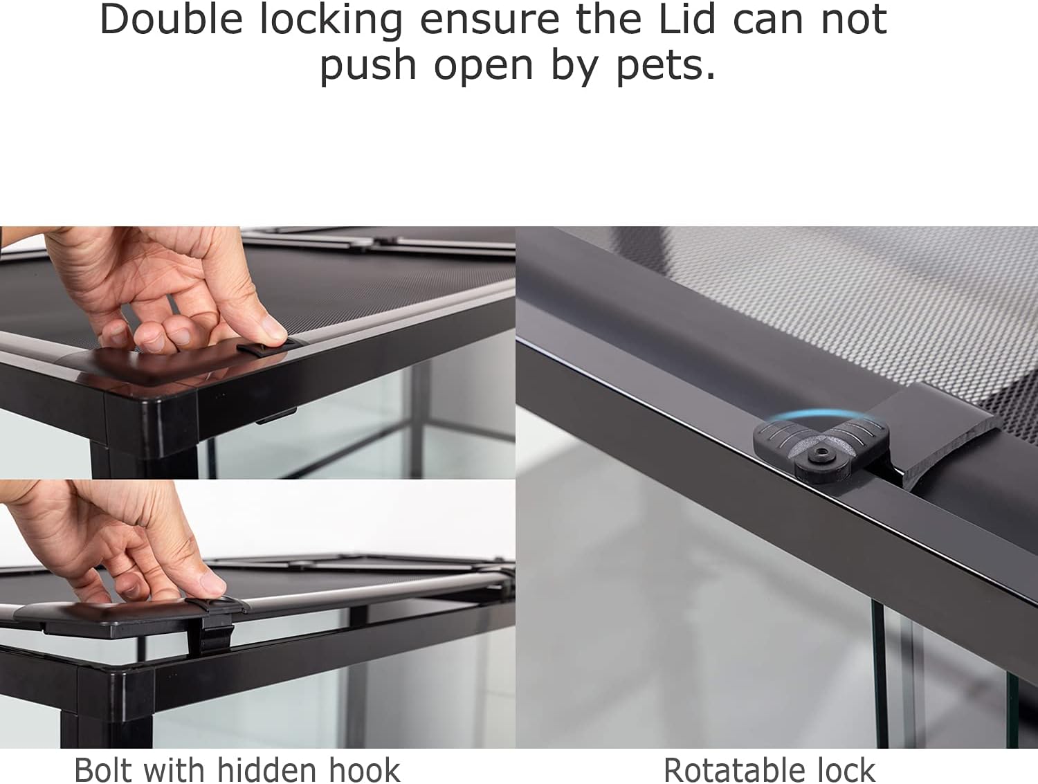 - 【ANTI-ESCAPE】Security buckle on the lid ensure the tank closed tightly, prevent your reptile amphibian chameleon pets from escaping. And the security lock avoid the doors open accidently by your kids and keep your kids safe.