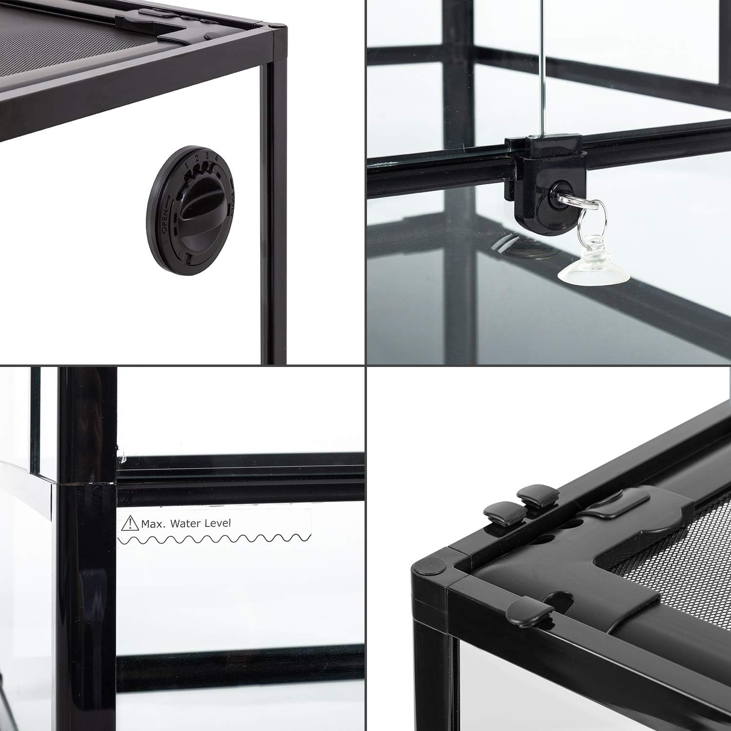 - Raised bottom frame in order to fit a substrate heater; And waterproof bottom can hold water for some amphibian pets