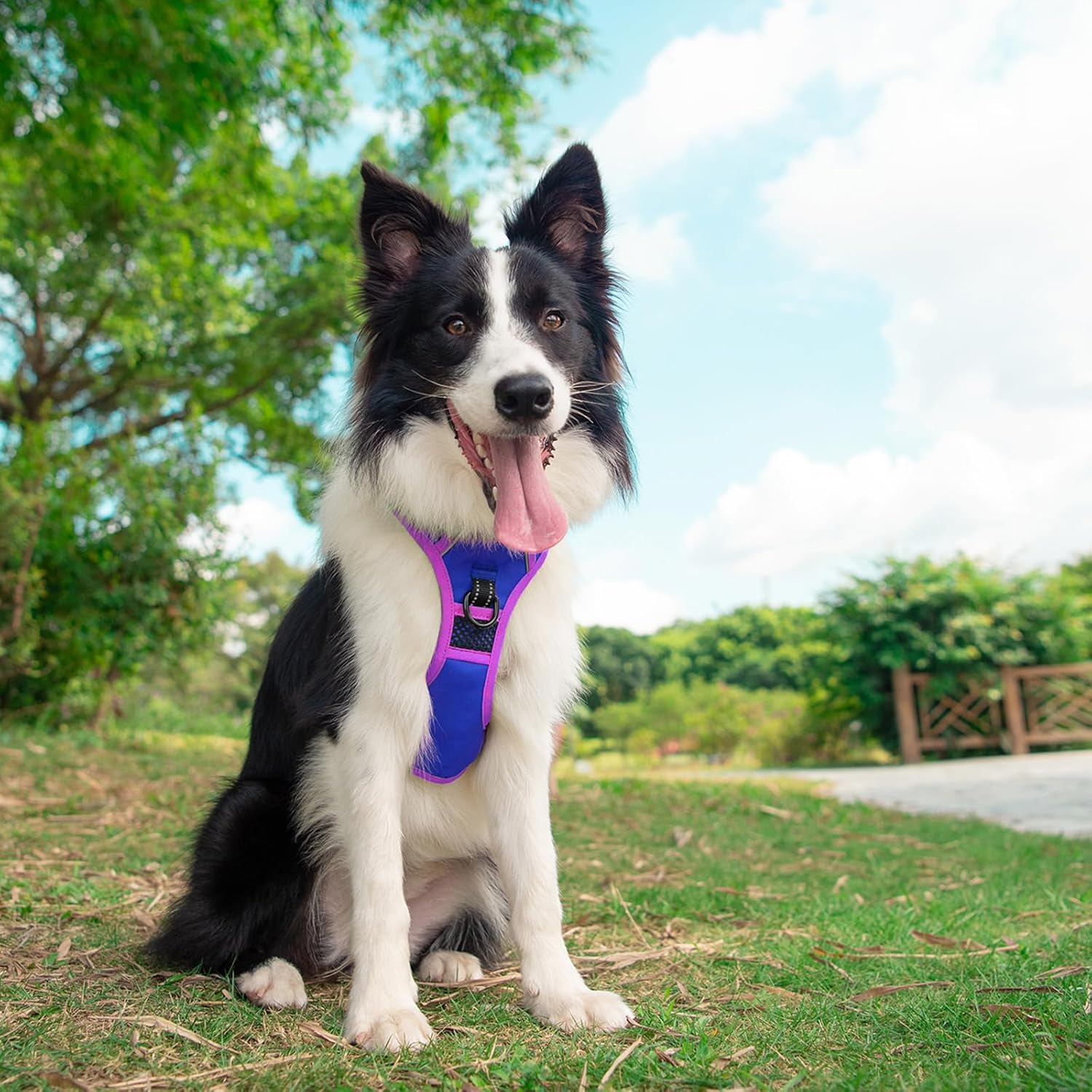 - [EASY ADJUSTMENT] This adjustable harness features 4 easy Adjusting Straps around the body. You can use its 2 neck straps and 2 chest straps to create a Perfect Fit for your dog with some room of growth. No worries about slipping out or choking.
