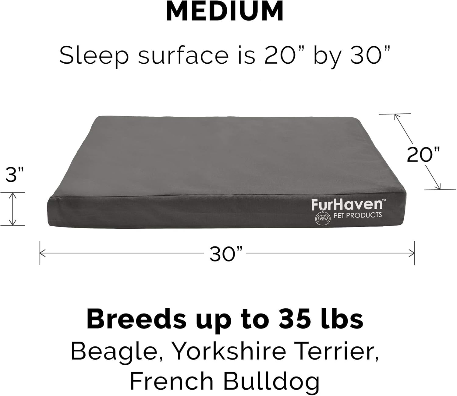 Furhaven Water-Resistant Cooling Gel Dog Bed for Medium/Small Dogs w/ Removable Washable Cover, For Dogs Up to 35 lbs - Indoor/Outdoor Logo Print Oxford Polycanvas Mattress - Stone Gray, Medium