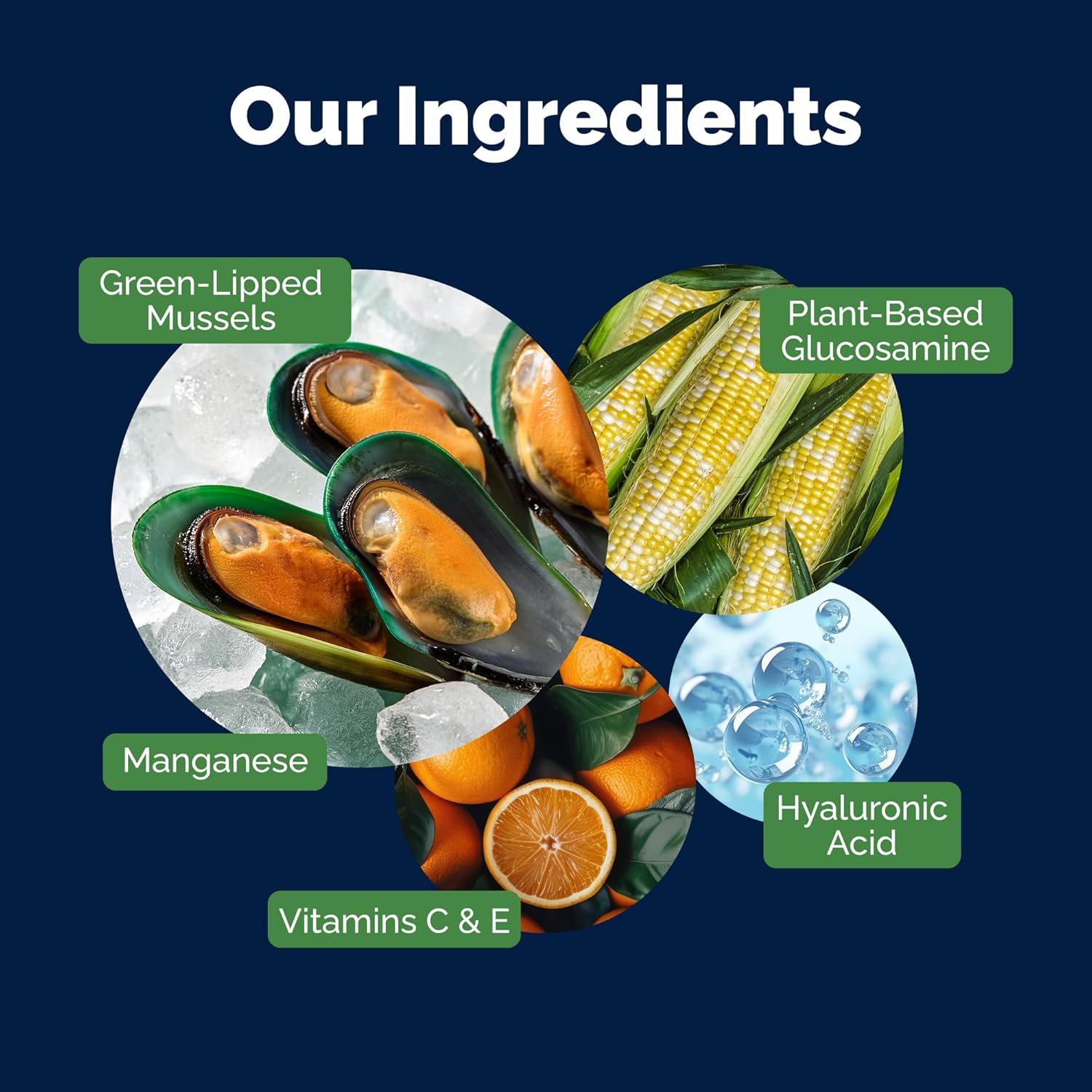 - NATURAL, PROVEN INGREDIENTS: Our clinically proven formula supports dog joint structure, healthy cartilage, collagen and joint health. Includes: Glucosamine HCI, Green Lipped Mussel, Ascorbic Acid Vitamin C , Manganese Sulfate, Hyaluronic Acid, D-Alpha Tocopherol Vitamin E