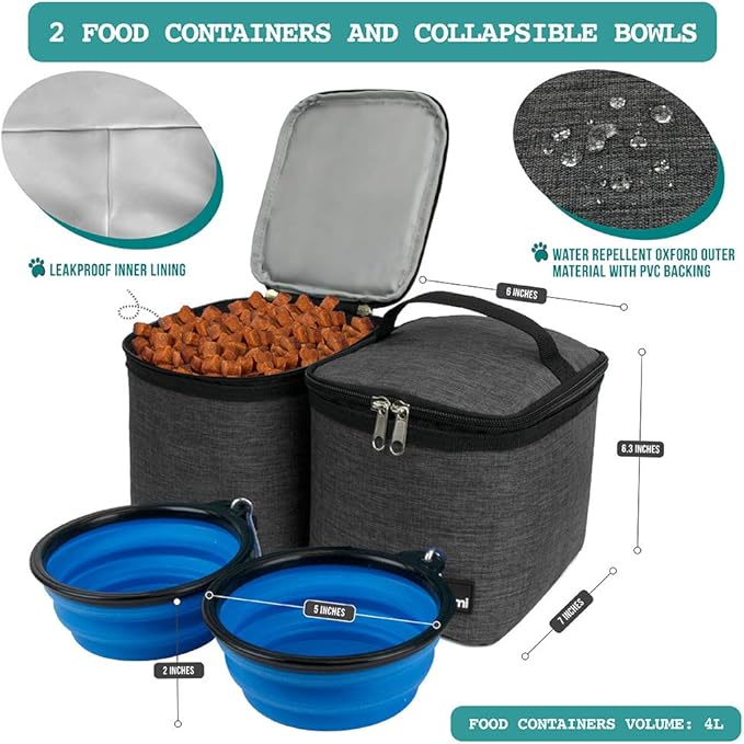 - PET SUPPLIES DOG DIAPER BAG: The dog travel backpack helps dog owners easily organize treats, kibbles, toys, leashes, and all other pet accessories and training supplies. The doggie traveling backpack comes with two food containers and two collapsible silicone dog bowls, ensuring that your pet is well-fed and hydrated during your hiking camping trip. Each food container has a 4L capacity, making it a camping gear must have for all small, medium, and large size dogs and cats.
