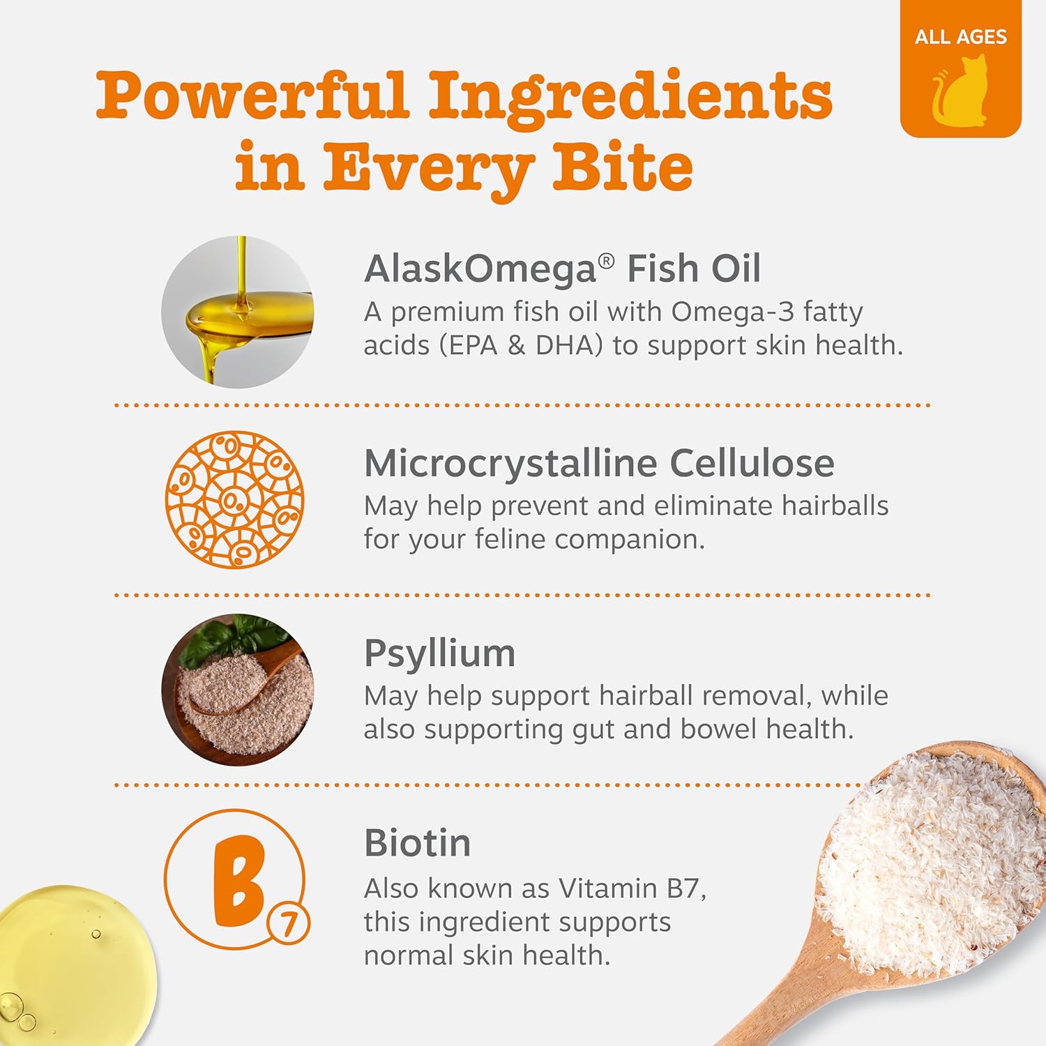 Zesty Paws Hairball Bites for Cats - Cat Furball Support - Functional Supplement with Omega 3 Fish Oil EPA & DHA + Zinc, Biotin & Psyllium Husk - Supports Gut & Skin Health - 60 Count