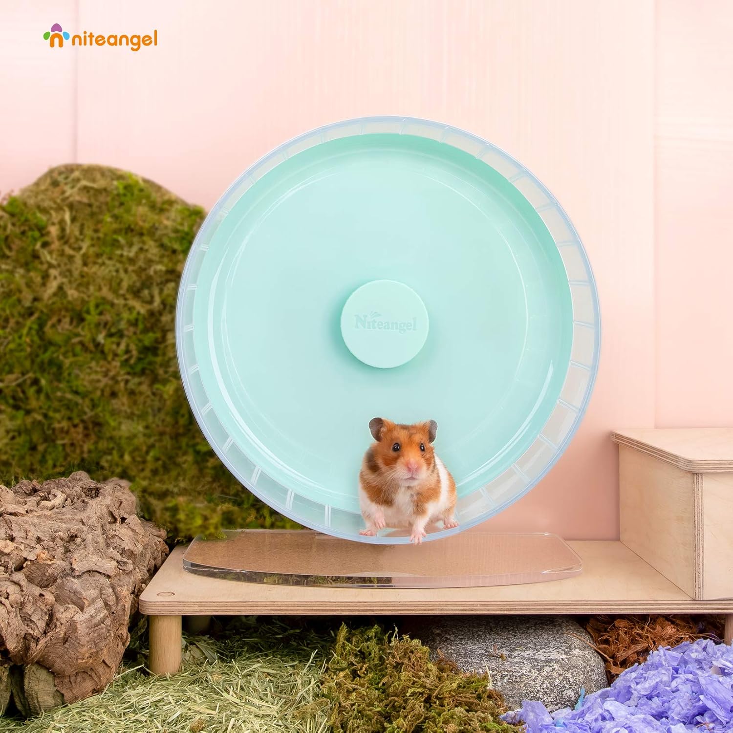 Niteangel Super-Silent Hamster Exercise Wheels: - Quiet Spinner Hamster Running Wheels with Adjustable Stand for Hamsters Gerbils Mice Or Other Small Animals (L, Mint Green)
