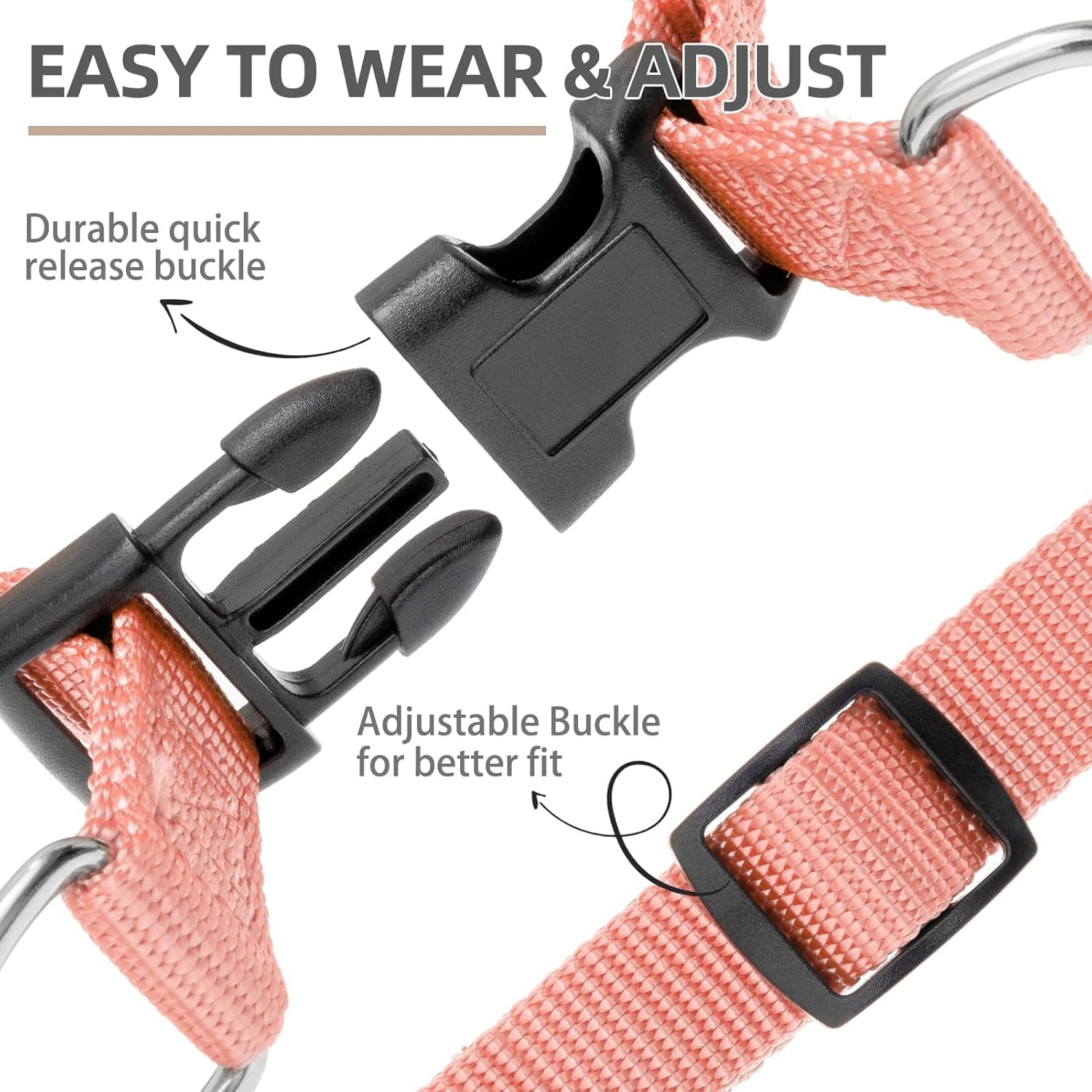 PUPTECK No Pull Dog Harness Soft Adjustable Basic Nylon Step in Puppy Vest Outdoor Walking with ID Tag Medium LightCoral