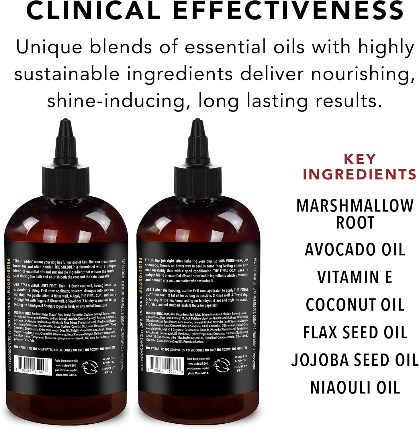 - COATCARE: Each PRIDE+GROOM formula contains unique blend of all-natural essential oils, signature scents and sustainable ingredients for dog’s specific coat + skin types that provide healing, hydrating, cleansing, nourishing and beautifying benefits.