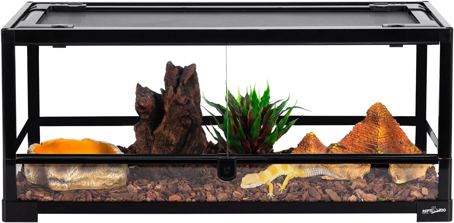 - 【Top Screen Ventilation】Thin wire top screen provides ventilation and allows uvb and infrared penetration. Raised bottom frame can be fit a substrate heater; Waterproof bottom makes this 20 gallon tank can be used both as desert terrarium and rainforest tank.