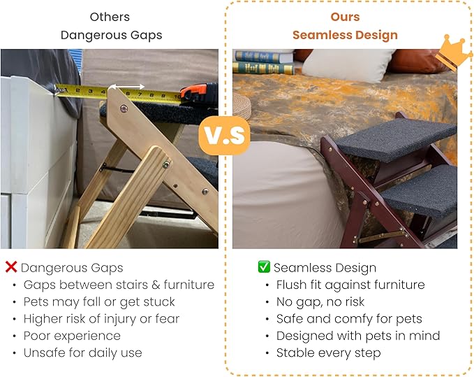 - 1. Adjustable 3-in-1 Ramp & Stairs Easily switch between stair and ramp mode to suit your pet’s needs. Whether for aging joints or tiny paws, our 3-in-1 foldable design (Stair / Ramp / Storage) ensures safe and comfy climbs.
