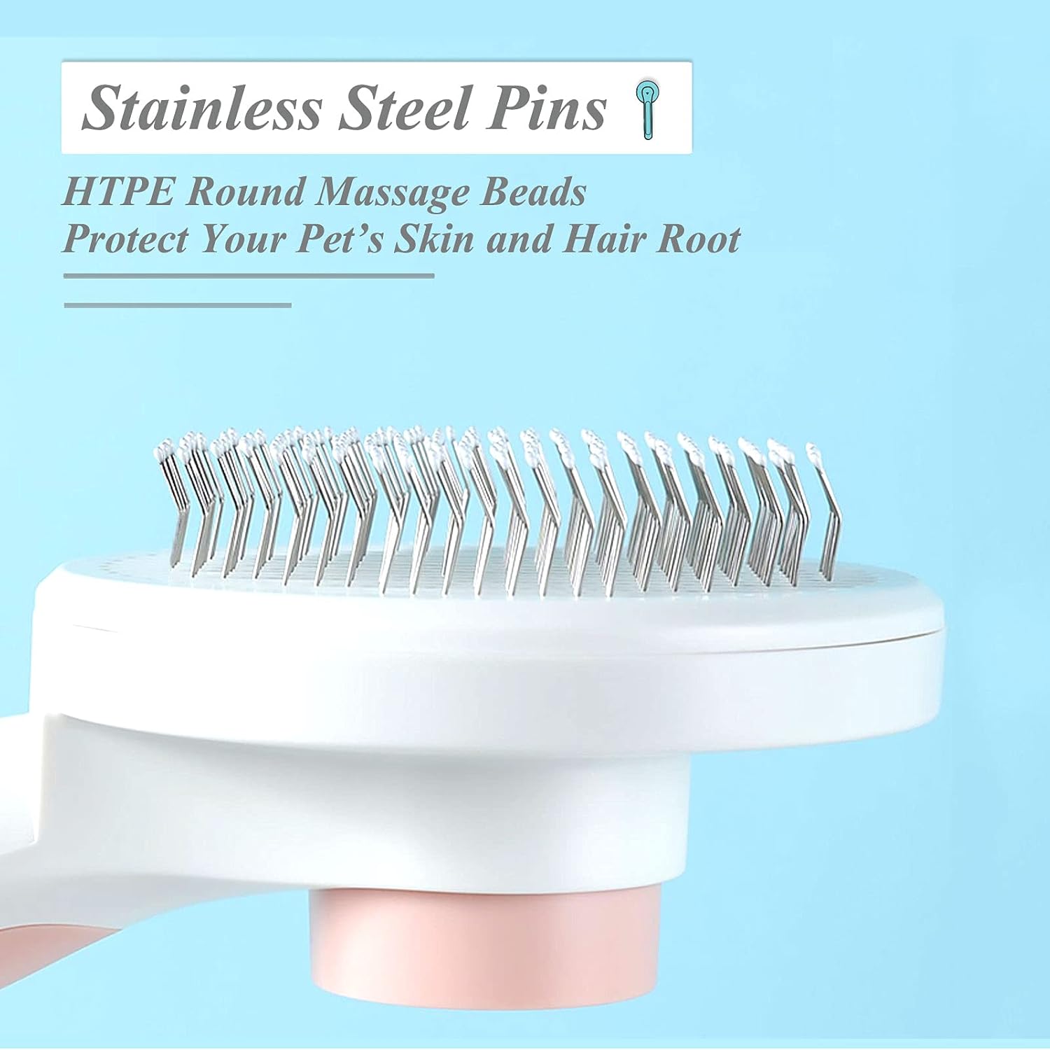 Pet Grooming Brush, Self Cleaning Slicker Brush for Dogs and Cats, Removes Undercoat Loose Hair, Mats, Tangled and Dirt, Massages, All Hair Types (Pink)
