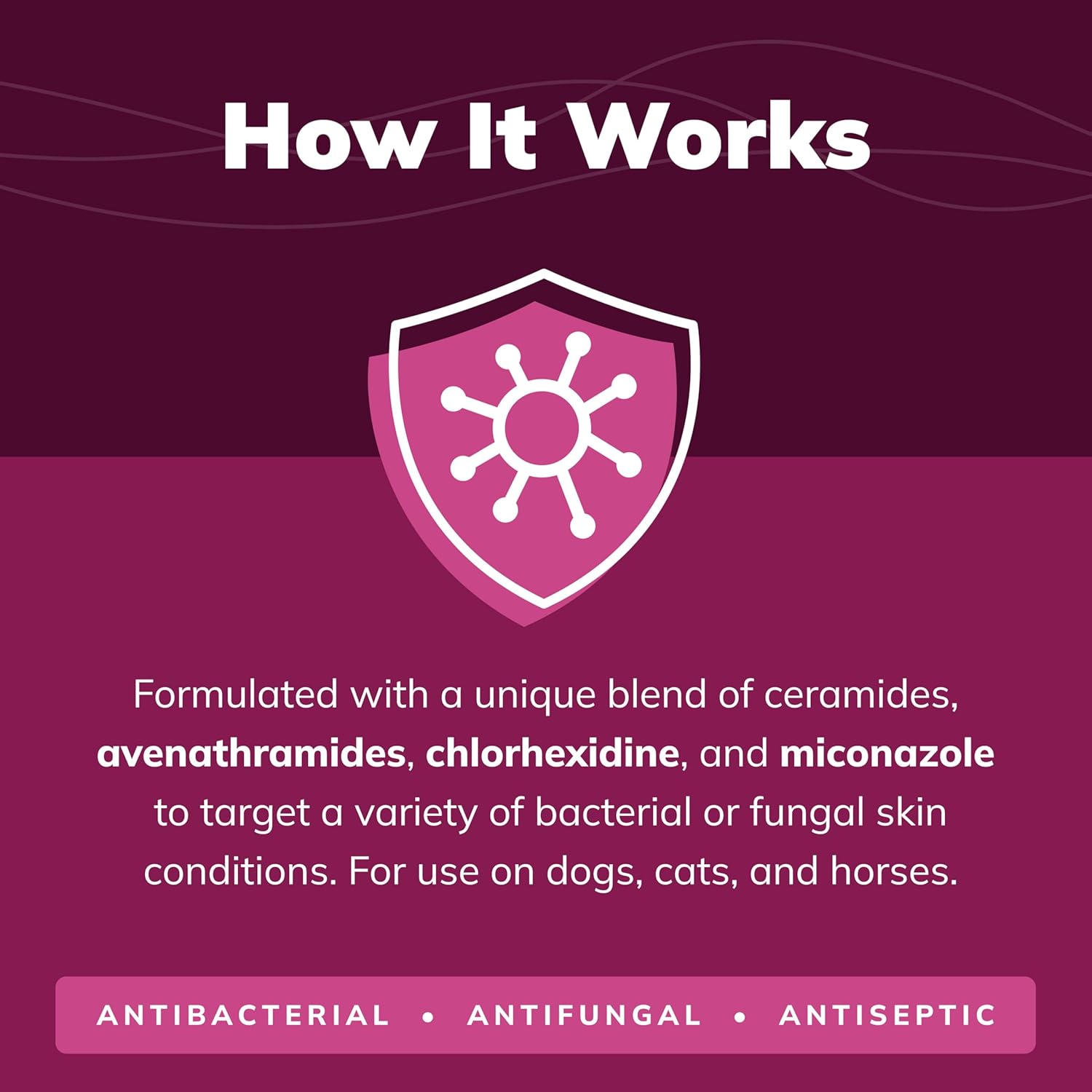 - Chlorhexidine and miconazole for antiseptic activity on the skin