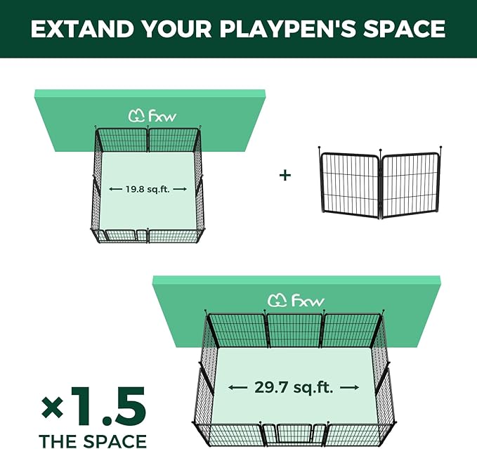 - A win-win solution: The FXW Dog Playpen is designed to bring a win-win solution to you and your lovely dog. Different from a narrow enclosure cage or kennel, the FXW dog pen provides a spacious semi-open activity area specifically for your dog. Your dog will have fun in its safe and sturdy kingdom. Meanwhile, you can take a real break and be truly relaxed without worrying about your beloved pet. Fun, Relaxation and Well-being is the orientation of the FXW team.