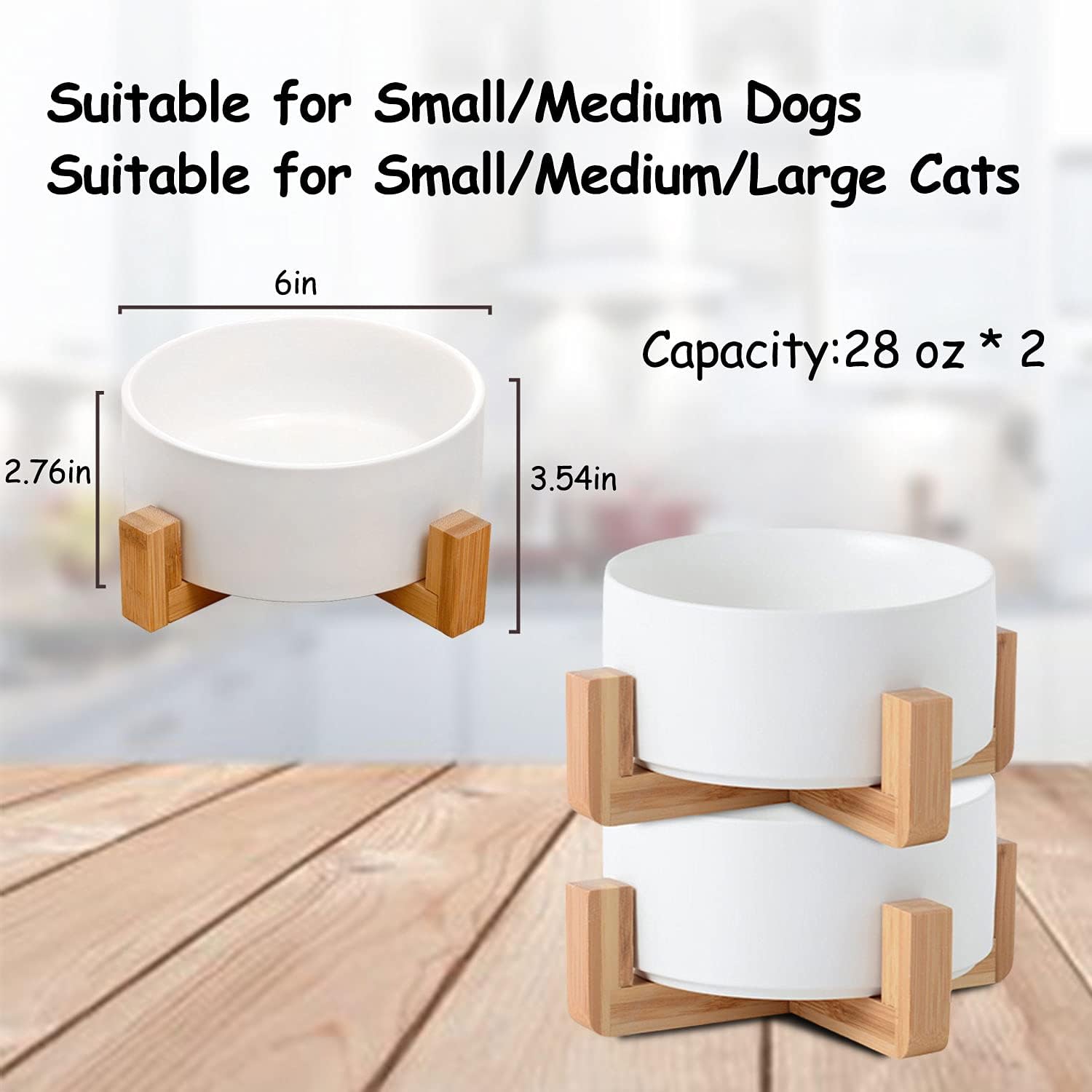 - EASY TO CLEAN CERAMIC - This easy clean dog bowl set is dishwasher proof, as well as easy to handwash and wipe down. With thick walls, these ceramic bowls for pets are sturdy, weighty yet not too heavy. Double Bowl Design:One dog bowl for food and one for water, Each ceramic cat bowl has a Unique wooden stand, raising the dishes closer to your pet for more comfortable eating