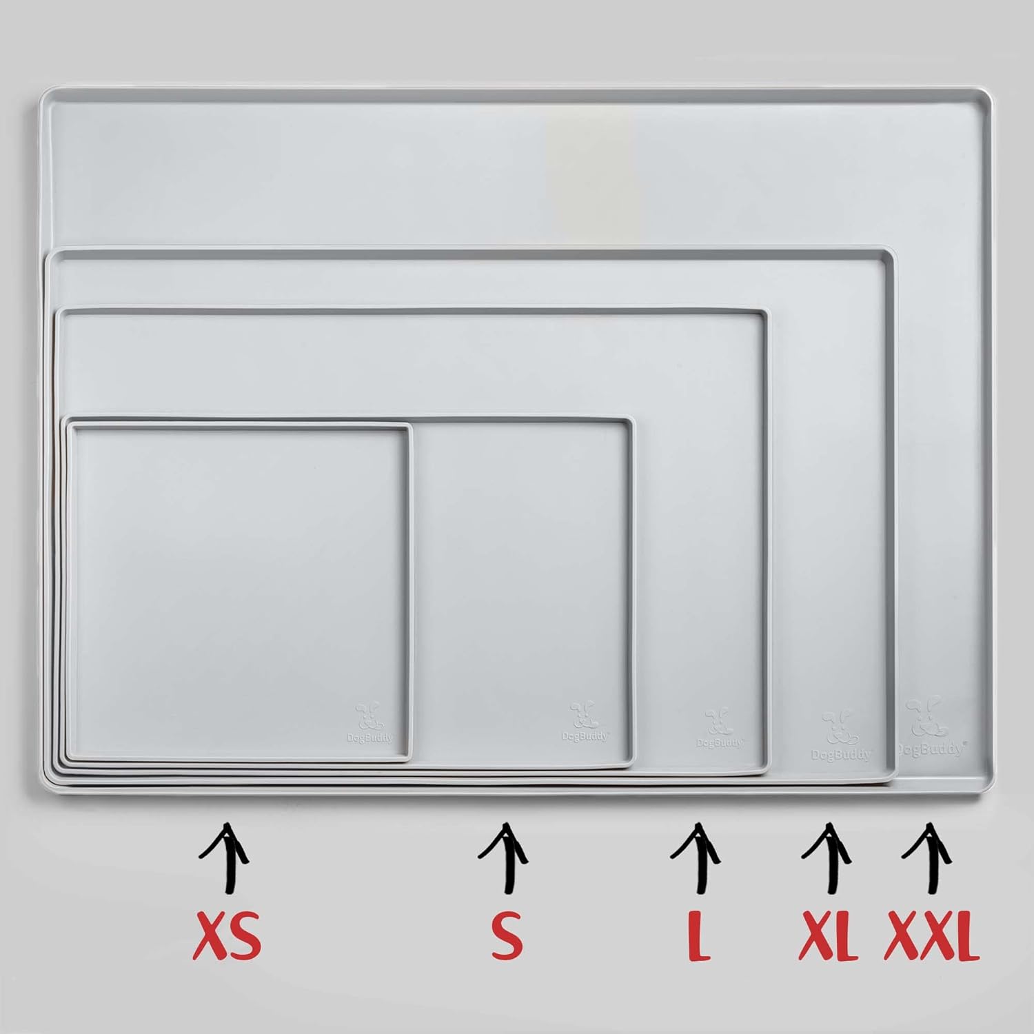 - Less Mess & Less Stress: Super high edge (0.6”) of DogBuddy Dog Food Mat keeps the spilled food and water on the mat and away from your beautiful floor. Silicone is naturally 100% waterproof, so what happens on the mat stays on the mat.