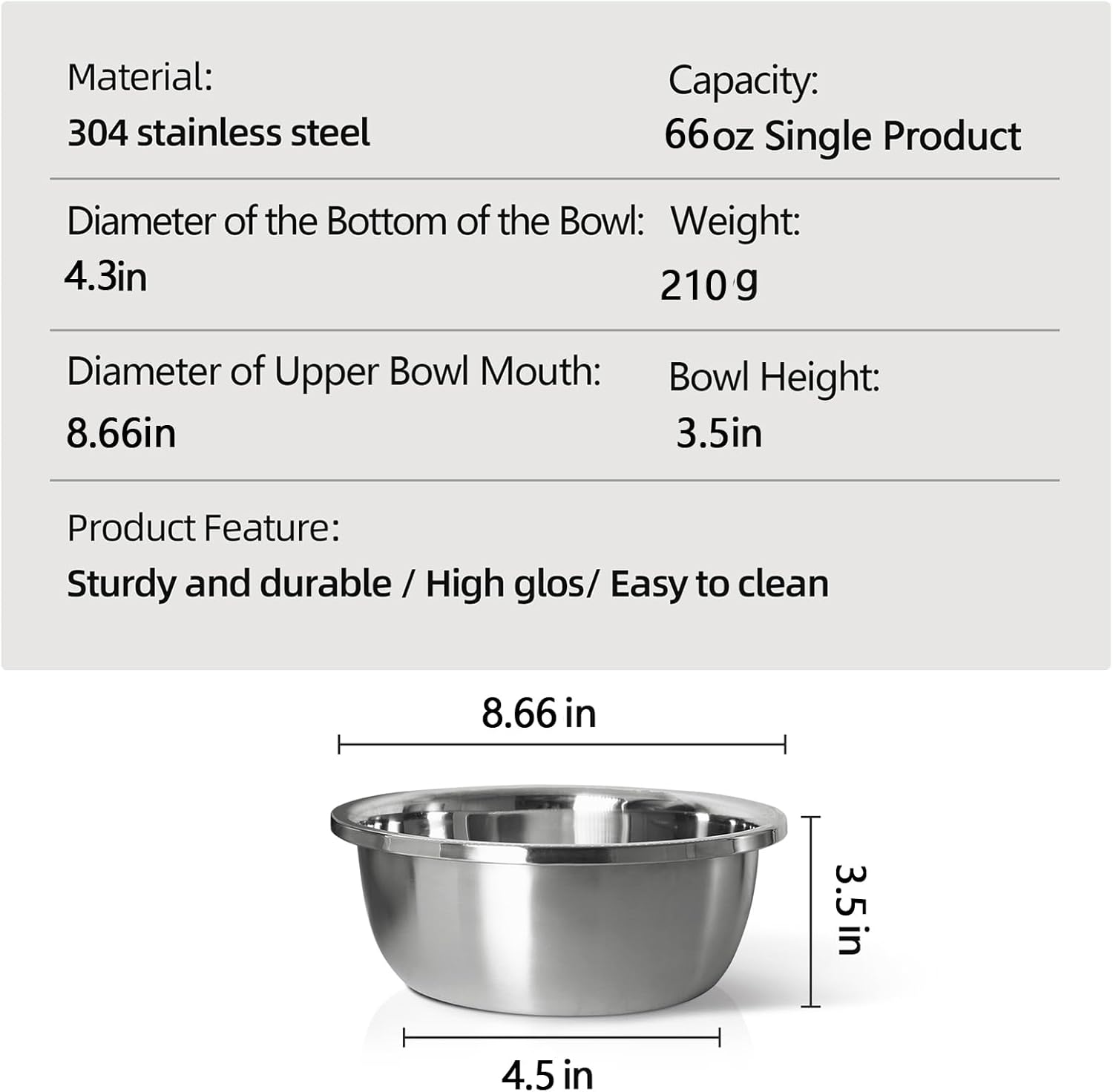 - STABLE AND SMOOTH: The pet food bowl is mirror polished for an elegant look and smooth touch. The flat edges won't hurt your dog's tongue, rust-resistant and easy to clean.