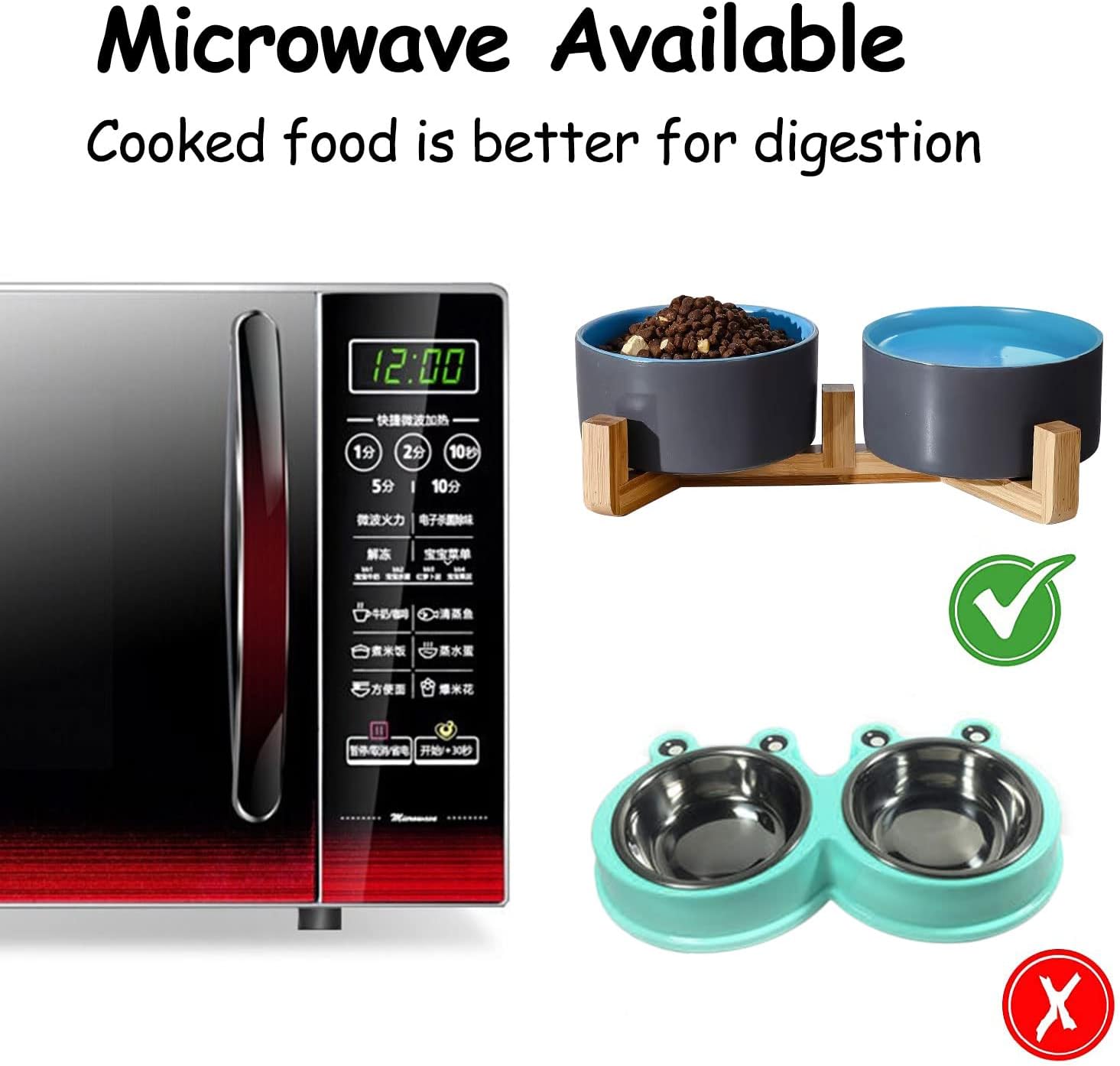 - Scientific Modern Designed - Cute dogs cats ceramic bowl with WOOD STAND design matches the home decorations. These look like decor pieces on the floor. Non-Slip bowl base, making it easy to pick up and put down.Suitable height makes your pet easier to ingest food and water, to develop a healthy eating posture, and protect your pet's cervical spine.