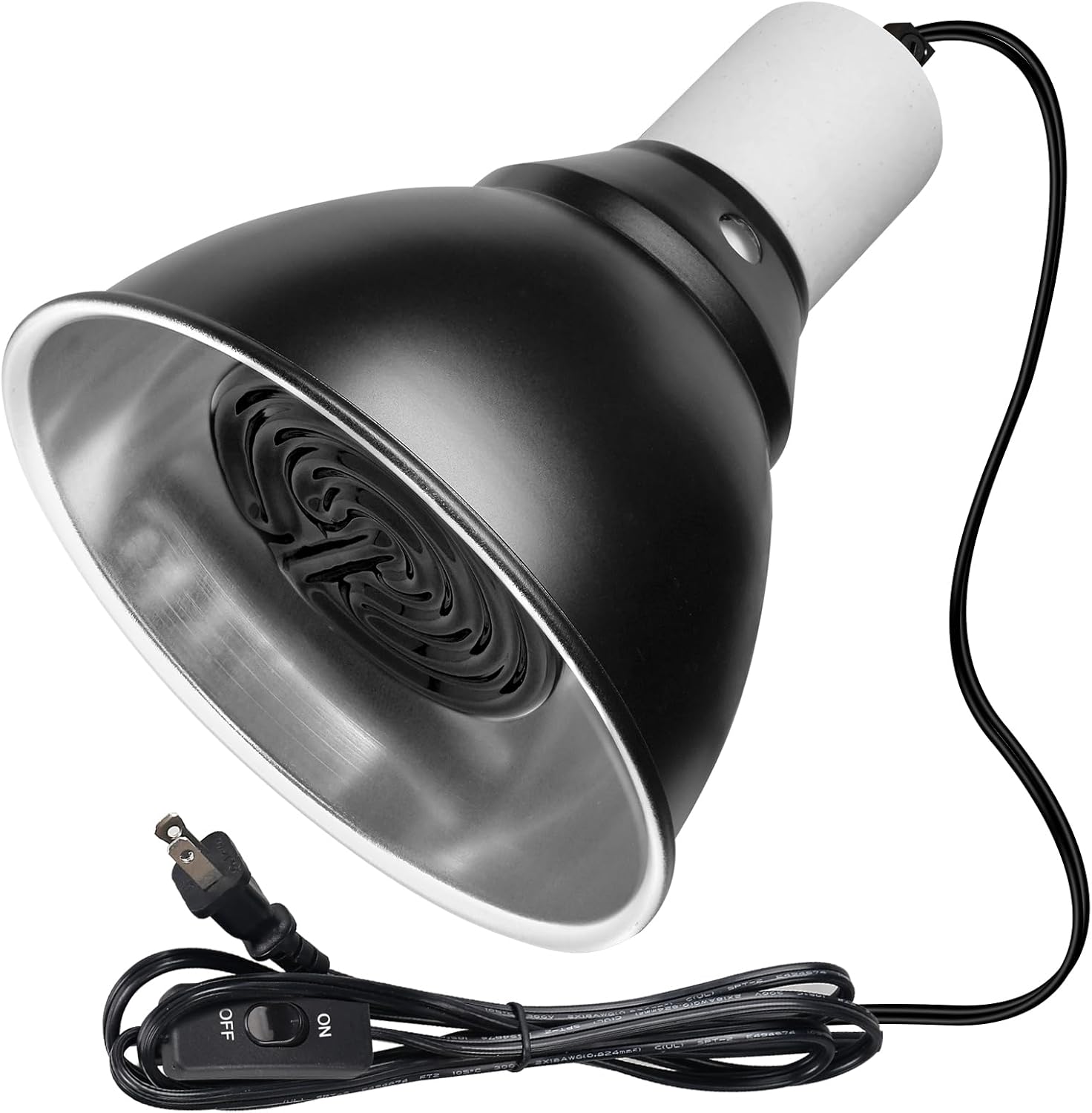 Reptile Lamp Bulb Fixture 5.5 Inch Deep Dome with Switch - Ideal for 60W/75W/100W/150W Heat Lamp Bulbs, Compatible with All E26 UVA/UVB/Basking Heat Bulbs, Supports Up to 150 Watts