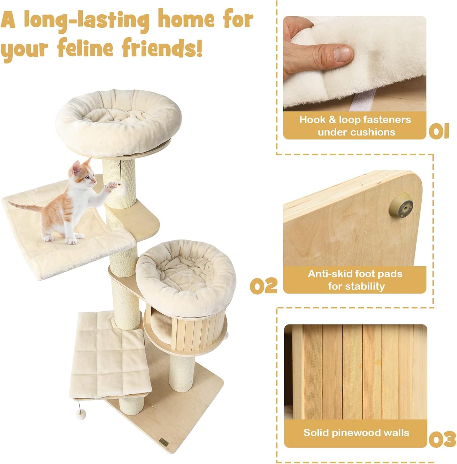 - [Satisfy Catsβ Instinct of Scratching]: Immerse your cat in the joy of claw care with our large cat tree's sisal-wrapped scratching posts. Crafted from natural sisal rope, these posts offer the perfect outlet for nail sharpening, ensuring your cat's well-being while safeguarding your delicate furniture from unsightly scratches. Let your feline companion indulge in this satisfying and stylish scratching experience.