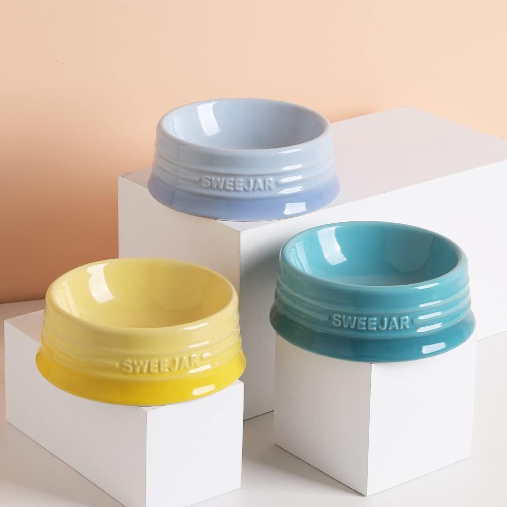 - Non Skidding - SWEEJAR dog bowls are made of food grade porcelain, microwave & dishwasher safe, easy to clean. The ceramic is heavy to help keep the bowl upright when dog eat food. No messy floors to clean.
