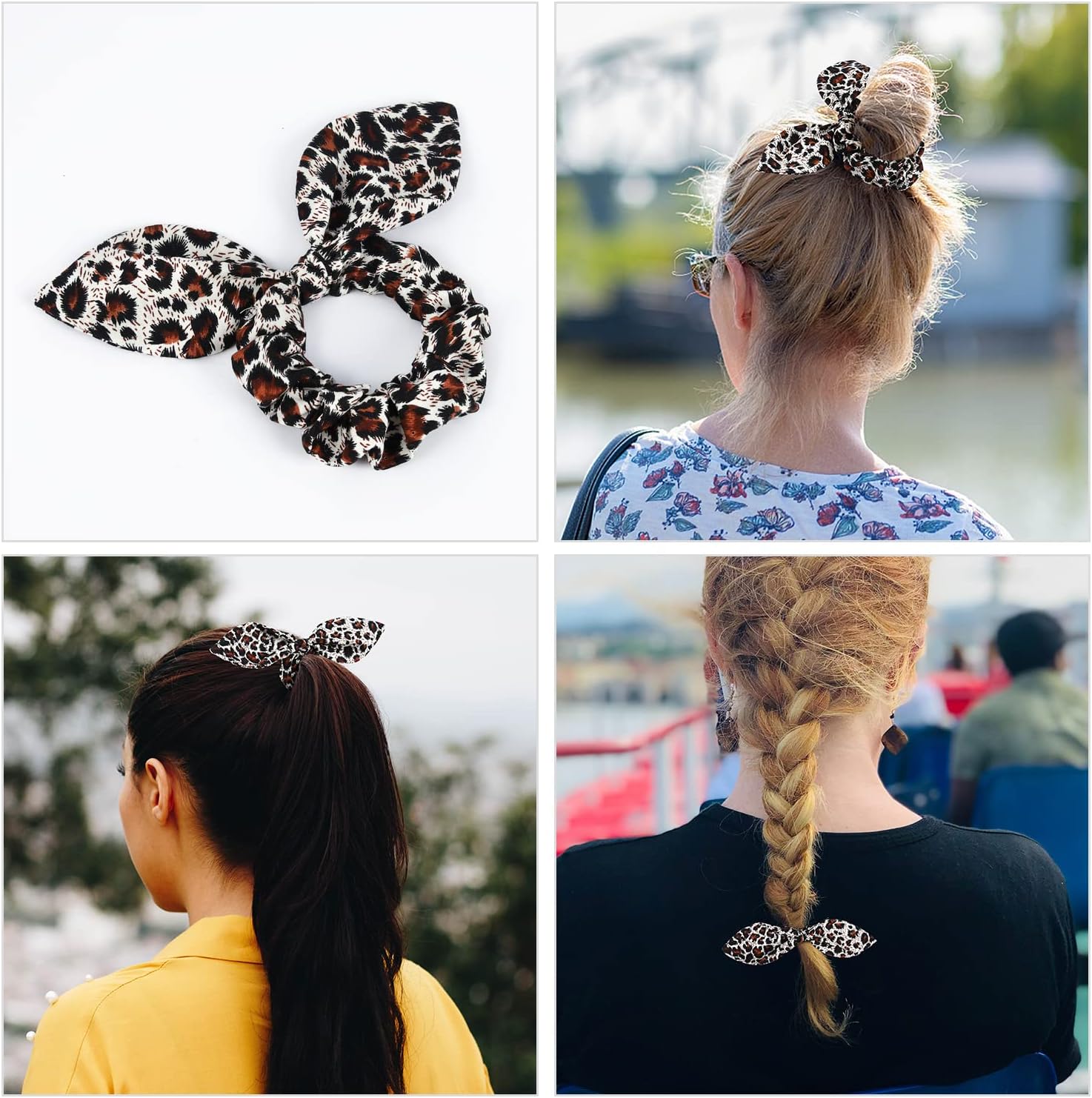 - Matching Bandana and Scrunchie Set- It’s full of love when your pets is wearing the animal print dog scarf and you are wearing the headband. When traveling, sleeping, taking photos or daily walking, adorable cheetah print puppy bandana and scrunchie is a pretty daily accessories. The scrunchie can be worn as a wrist accessory, and as a hairband to hold your hair. Beautiful bohemian dog bandana matching human scrunchies with brown, black and beige print pattern, it’s nice photo props.