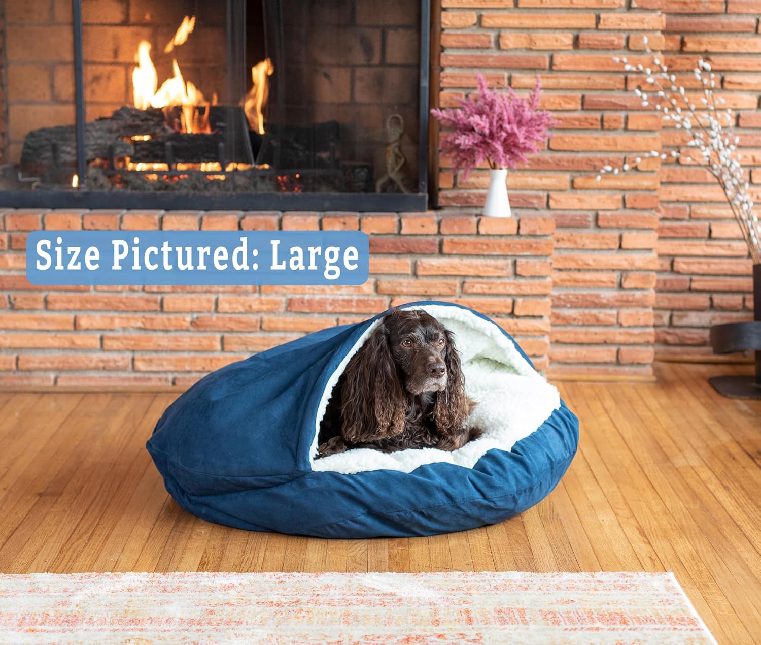 - Like a Hug for Your Dog: Is your dog a burrower or a cuddler? Our Cozy Cave dog bed is a hooded design that lets your dog snooze between layers of soft sherpa lining for enveloped comfort and coziness