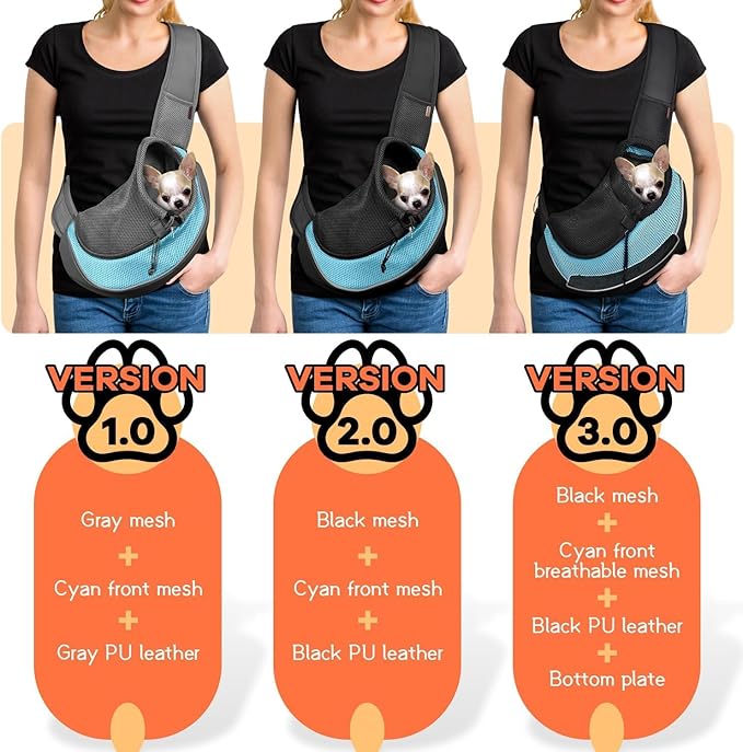 YUDODO Pet Sling Carrier for Small Dogs & Cats – Hands-Free Puppy Carrier with Safety Hook, Large Zipper Pocket, Soft Breathable Mesh, Adjustable Strap & Reflective Strip (Cyan 2.0 M)