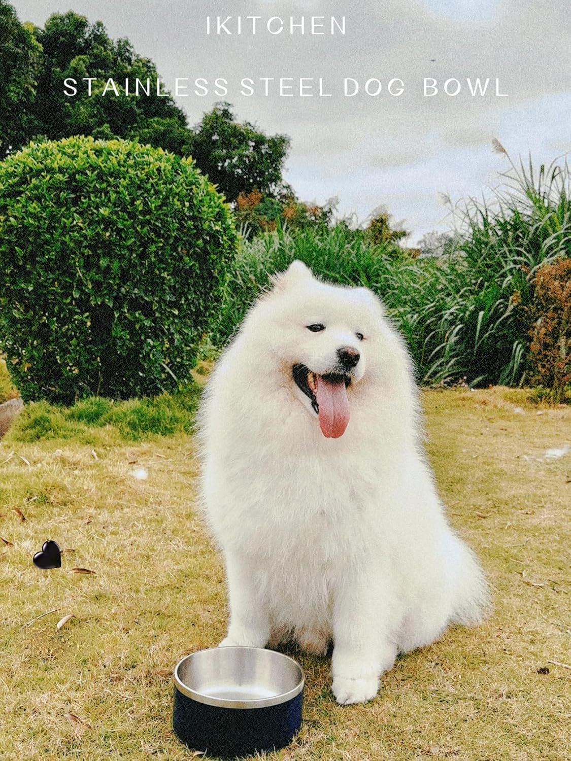 IKITCHEN Dog Bowl for Food and Water, 64 Oz Stainless Steel Pet Feeding Bowl, Durable Non-Skid Double Wall Insulated Heavy Duty with Rubber Bottom for Medium Large Sized Dogs (64 Ounces/8 Cup, Black)