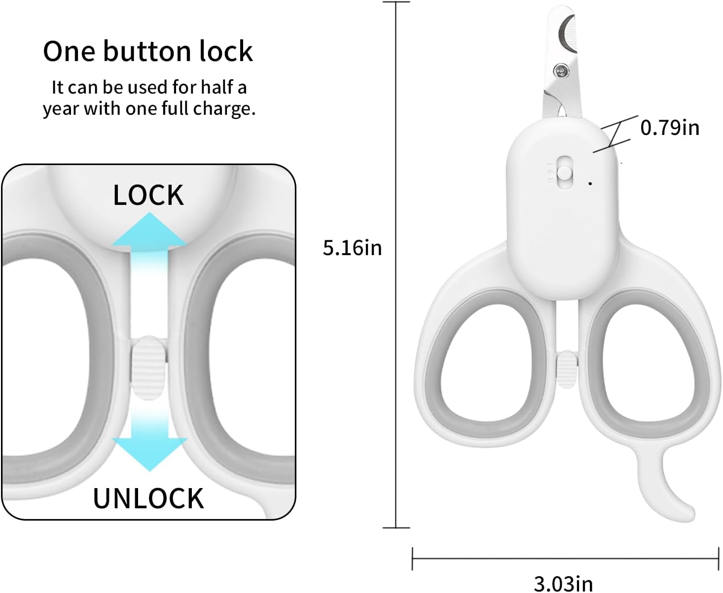 - Ringworm Detection: Our cat claw trimmer is also equipped with U-V lamp beads. Pet skin problems such as ringworm in cats or dogs can be detected under purple light. It is a reliable helper for your pet's health!