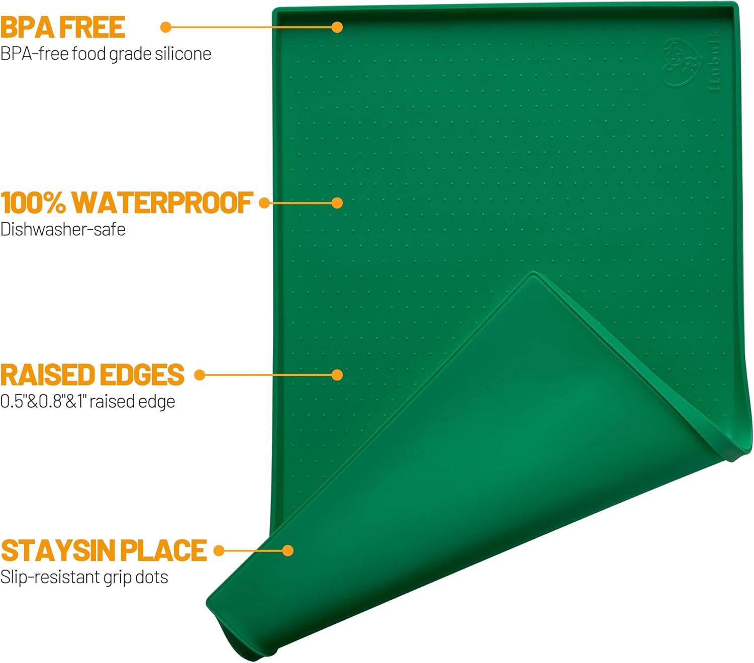 Hubulk Dog Feeding Mat,100% Waterproof Food Grade Silicone Pet Food and Water Bowl Placemat,Dishwasher, High Raised Edge to Prevent Spills,Nonslip Tray to Stop Messes on Floor(24"x16"x0.5",Hunter )