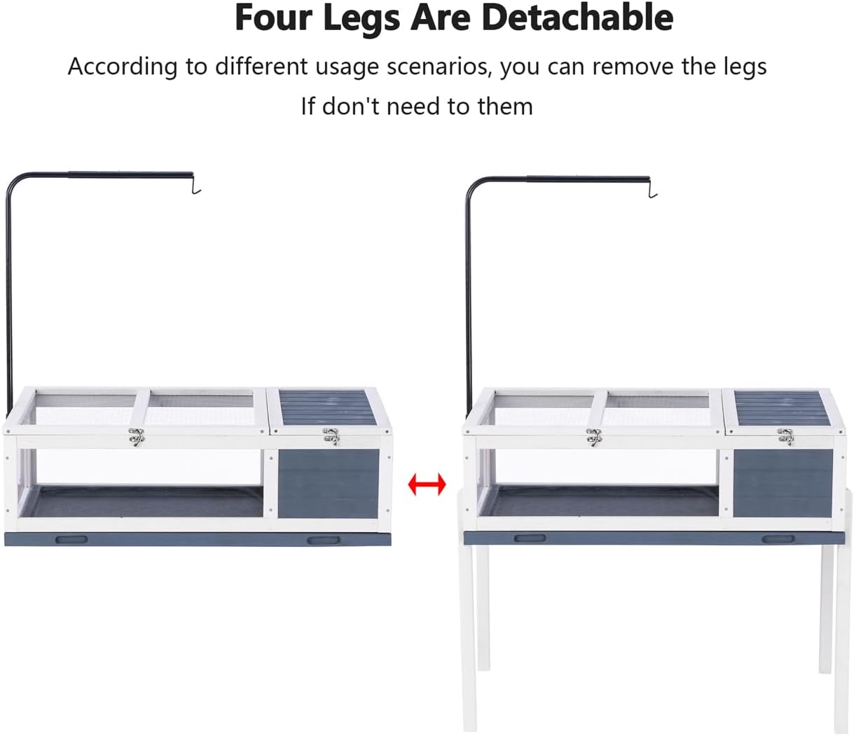 - 🐢Multifunctional Tortoise House: This cage is not only a tortoise cage. The bearded dragon could be a good habitat for other small reptiles, such as guinea, pigs, hamster, hedgehogs, rabbits, chicks, lizards, geckos, tortoise and other small animals etc. Detachable legs can be removed according to your needs, you can also put the cage directly on the table.