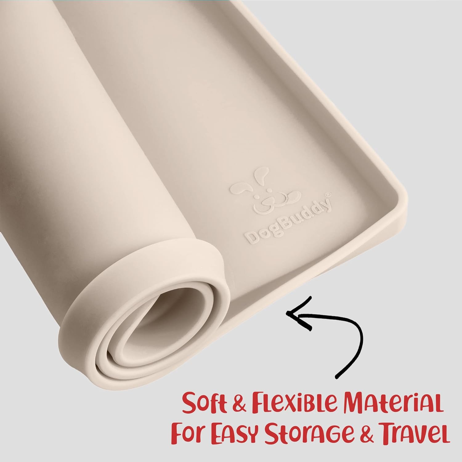 DogBuddy Dog Food Mat – Waterproof Dog Bowl Mat for Food and Water, Silicone Pet Feeding Mats for Floors, Non-Slip Placemat with High Edges for Dogs Bowls, Puppy Essentials (L: 24" x 16", Vanilla)